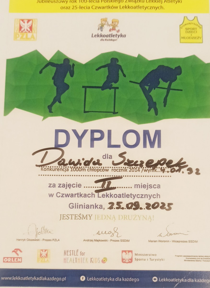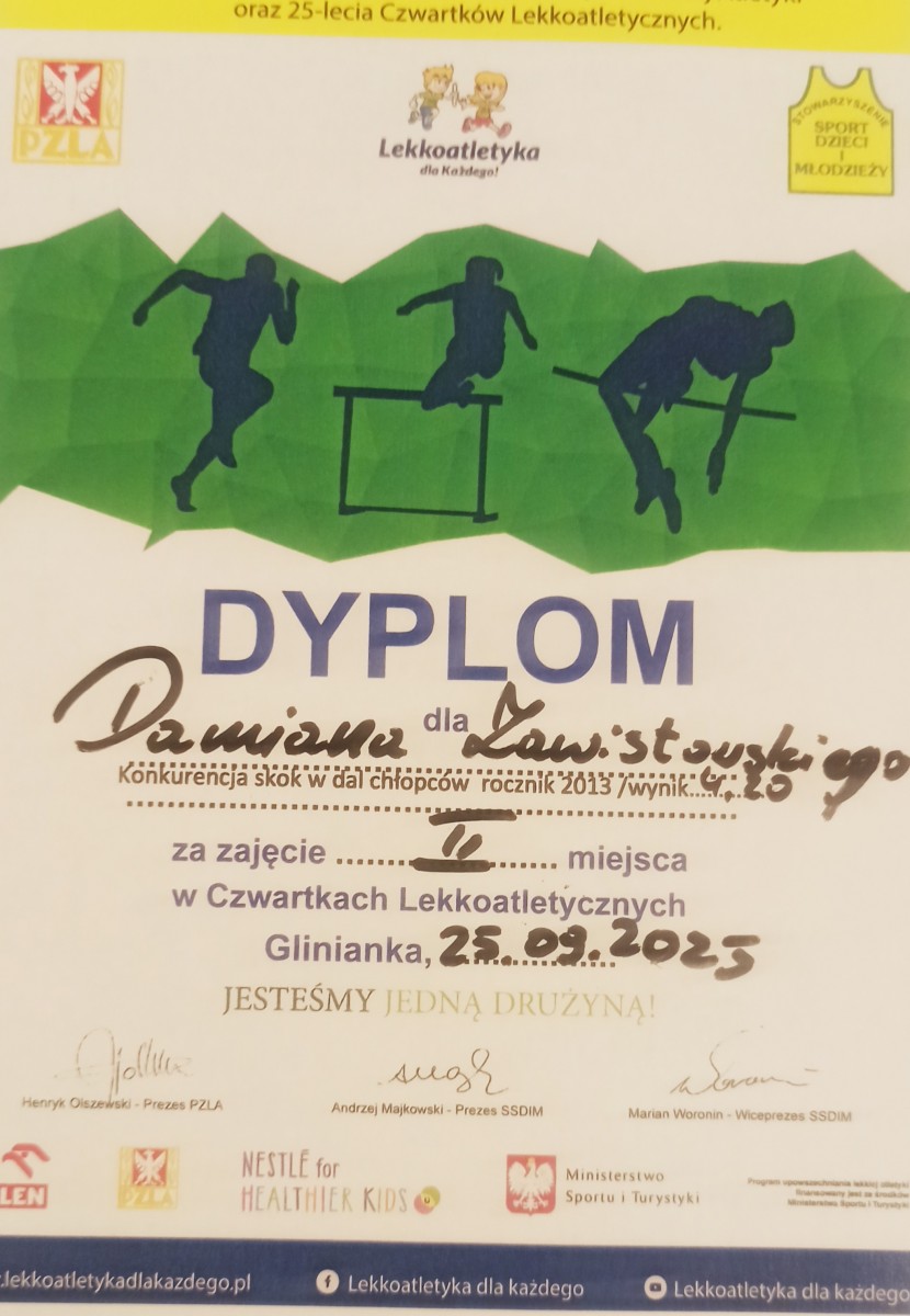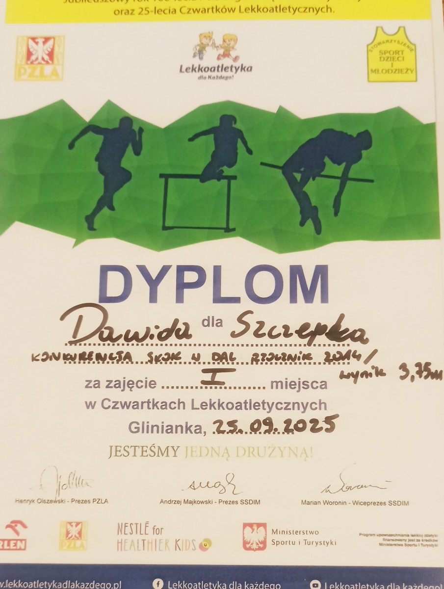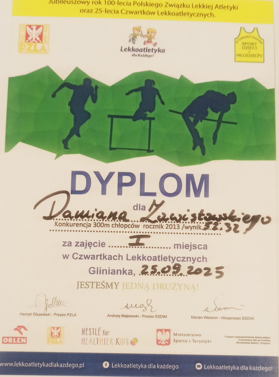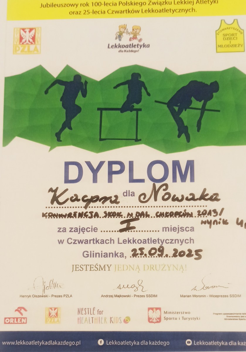 25 września 2025r. odbyły się kolejne zawody sportowe z cyklu „Czwartki Lekkoatletyczne” w Gliniance. Każdy zawodnik mógł startować w dwóch konkurencjach: w jednej biegowej i jednej technicznej.