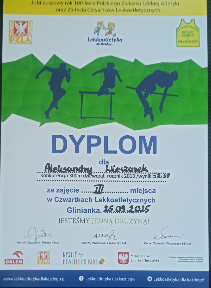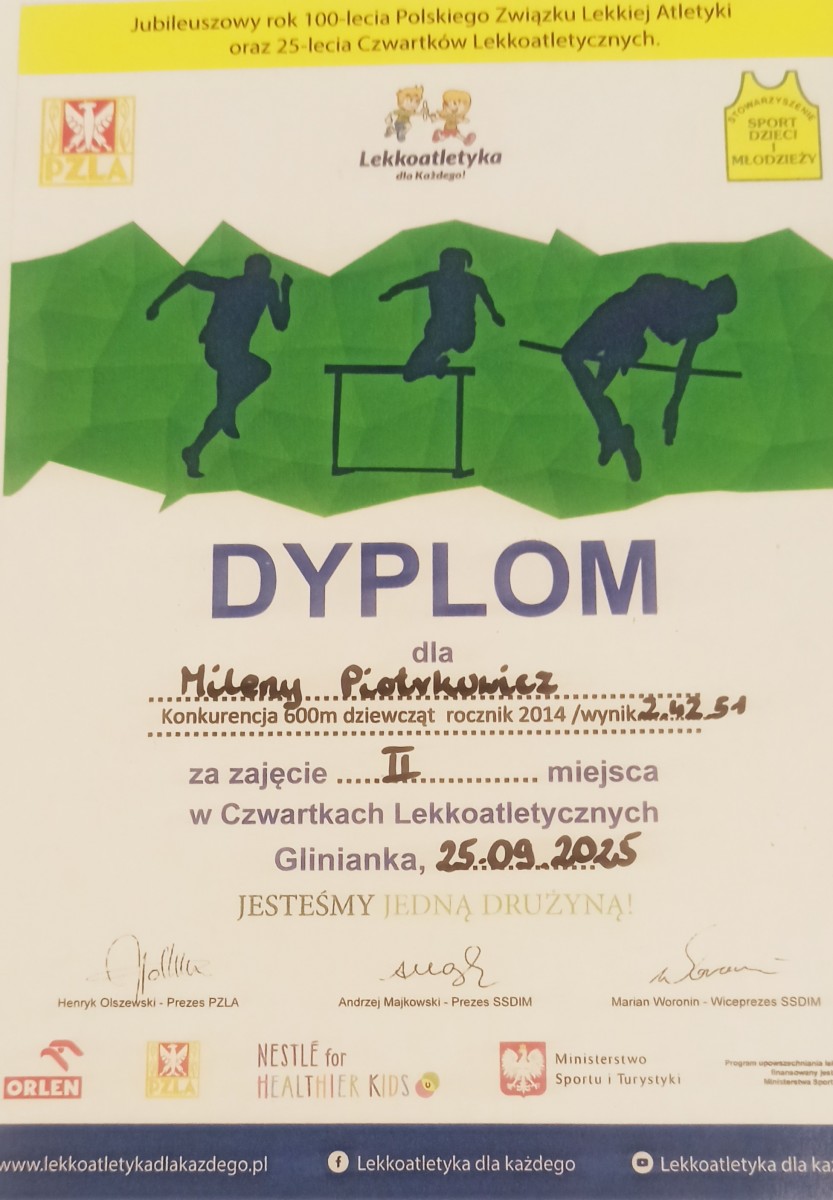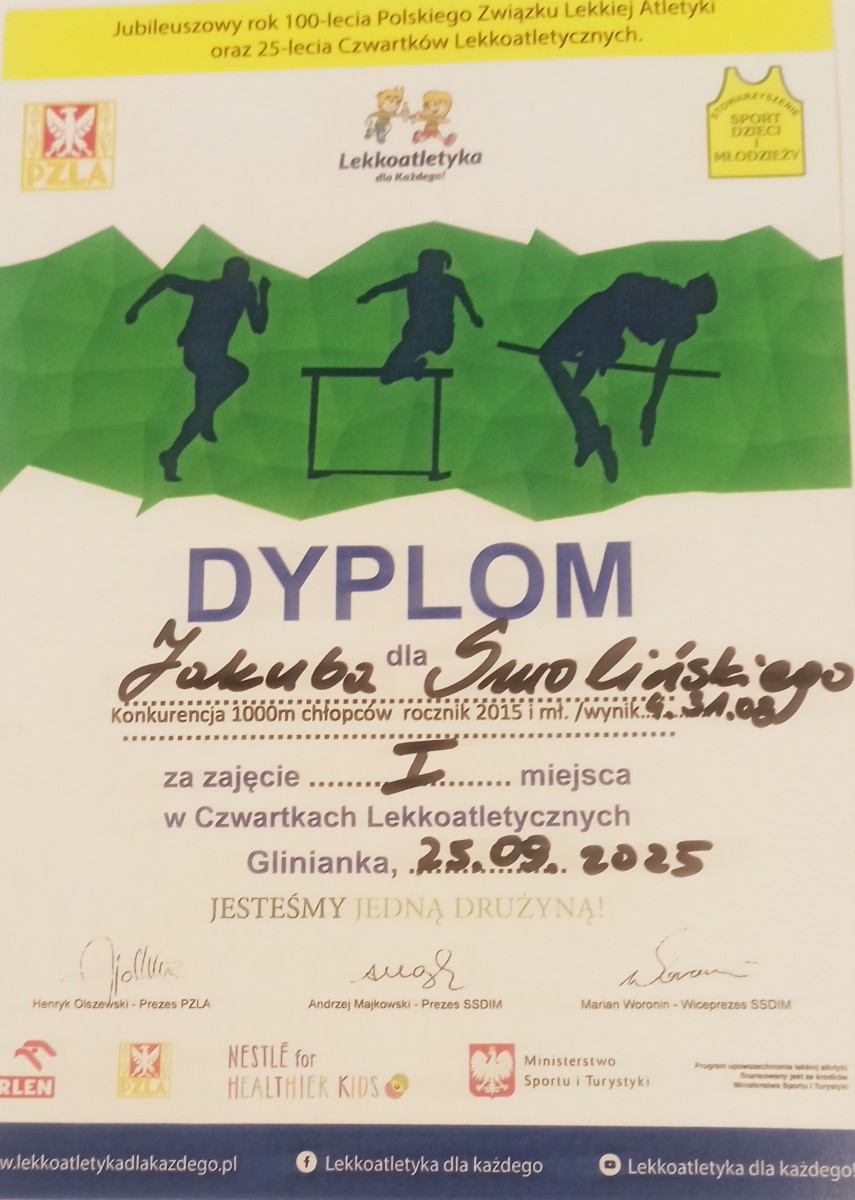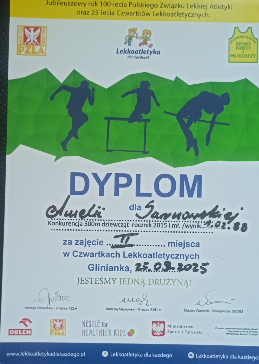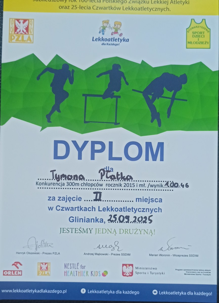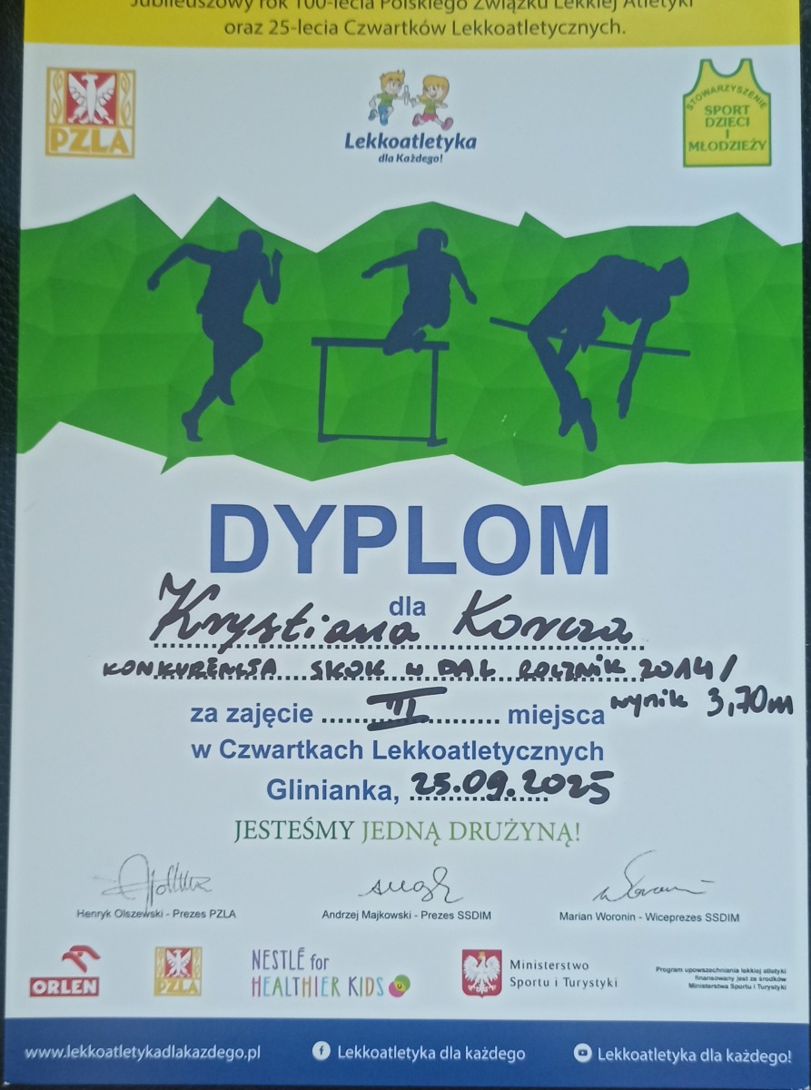 25 września 2025r. odbyły się kolejne zawody sportowe z cyklu „Czwartki Lekkoatletyczne” w Gliniance. Każdy zawodnik mógł startować w dwóch konkurencjach: w jednej biegowej i jednej technicznej.