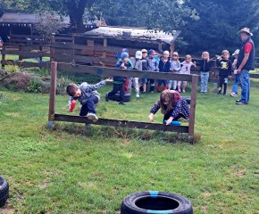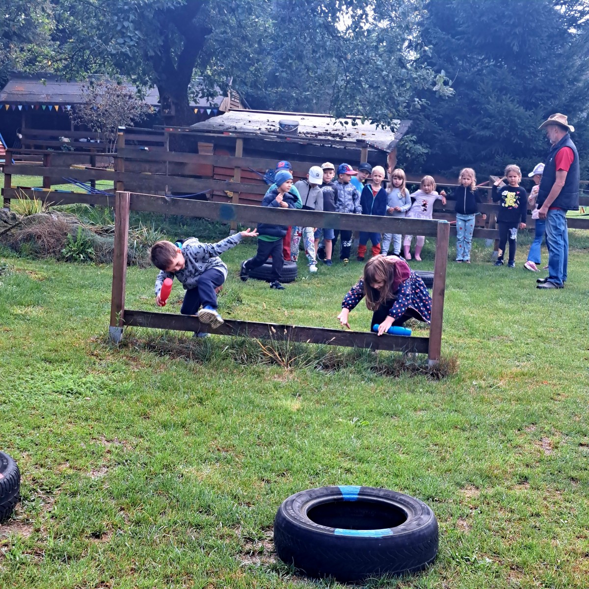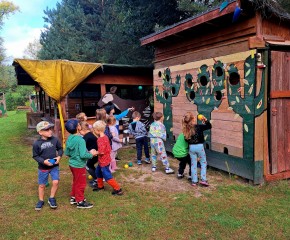 Na miejscu czekały na nas nie lada atrakcje. Dzieci sprostały każdemu postawionemu im zadaniu. Udało się im min.: celnie strzelać z łuku, pokonać labirynt – najwytrwalszym udało się to nawet kilkakrotnie, ułożyć duże drewniane puzzle. Dużym zainteresowaniem cieszyła się też jazda tyrolką i przejażdżki gokartami.