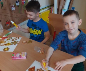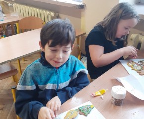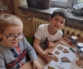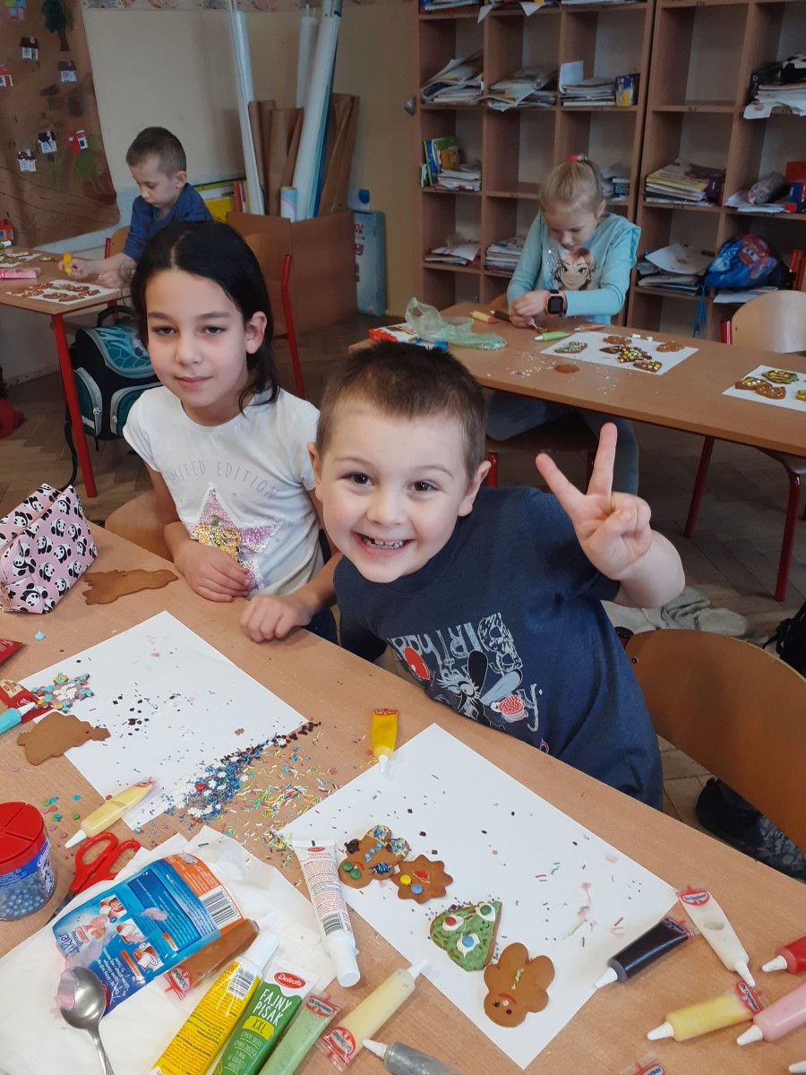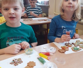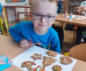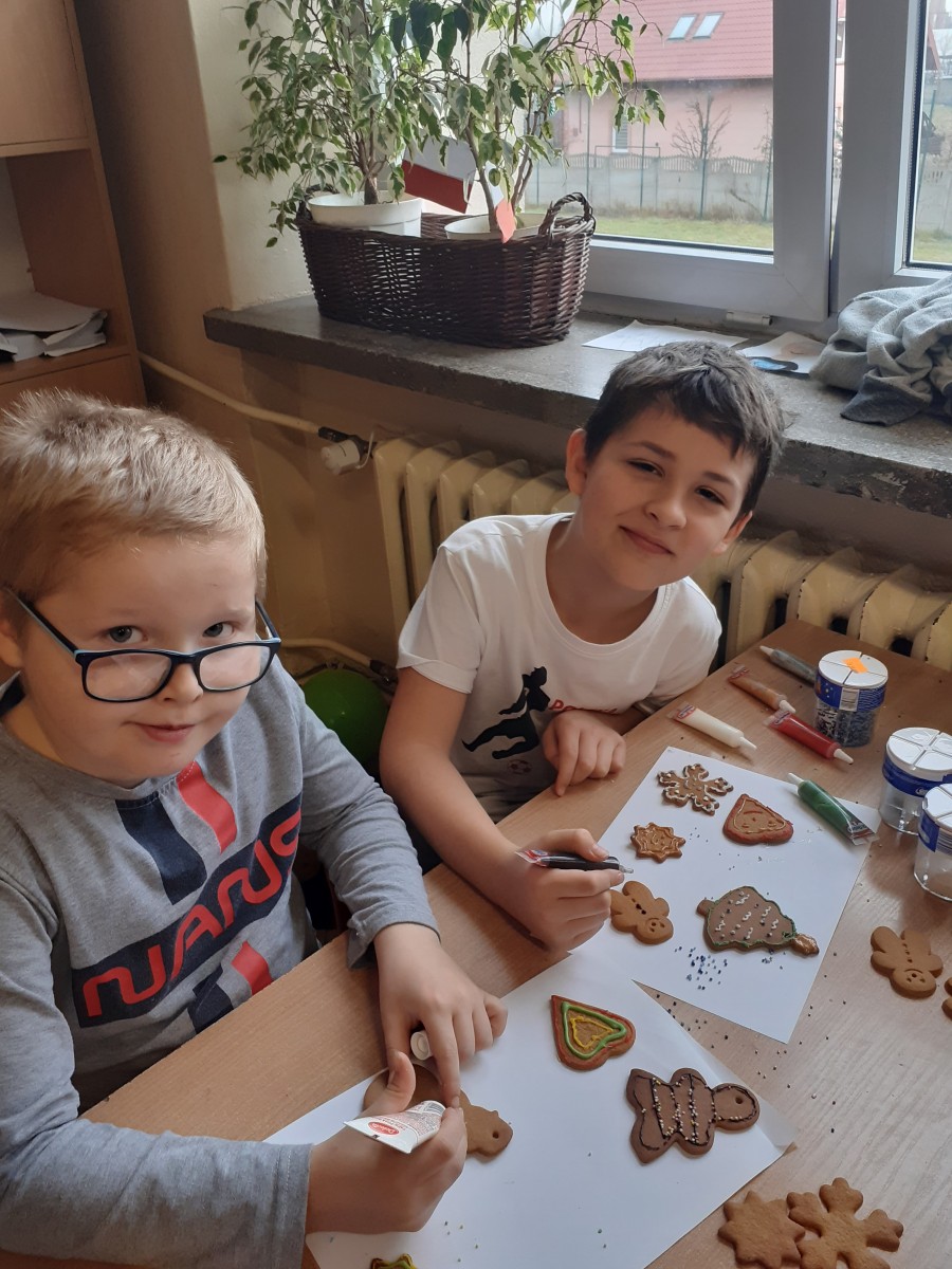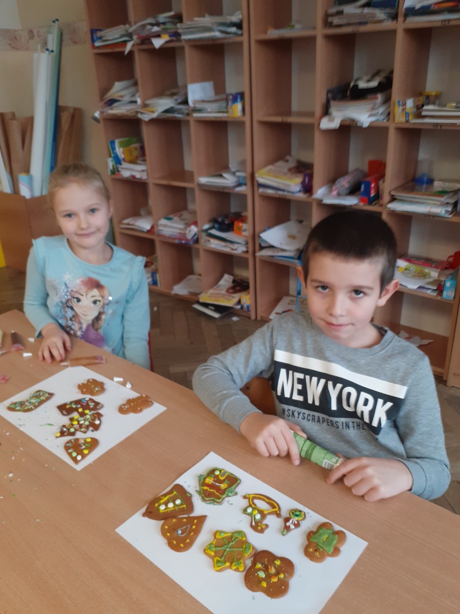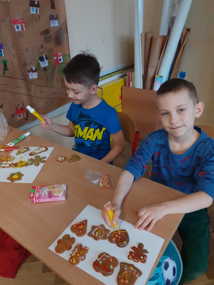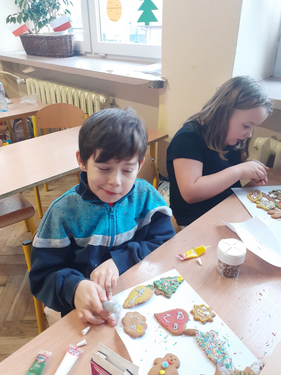 pięknie zdobiąc pierniczki przygotowane przez mamy :)