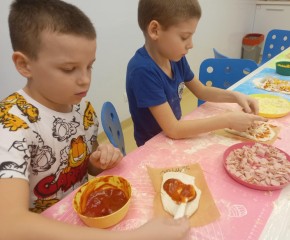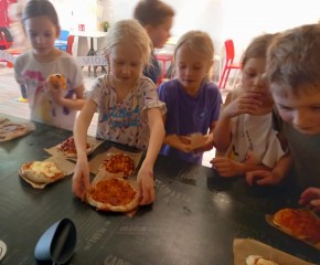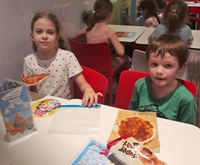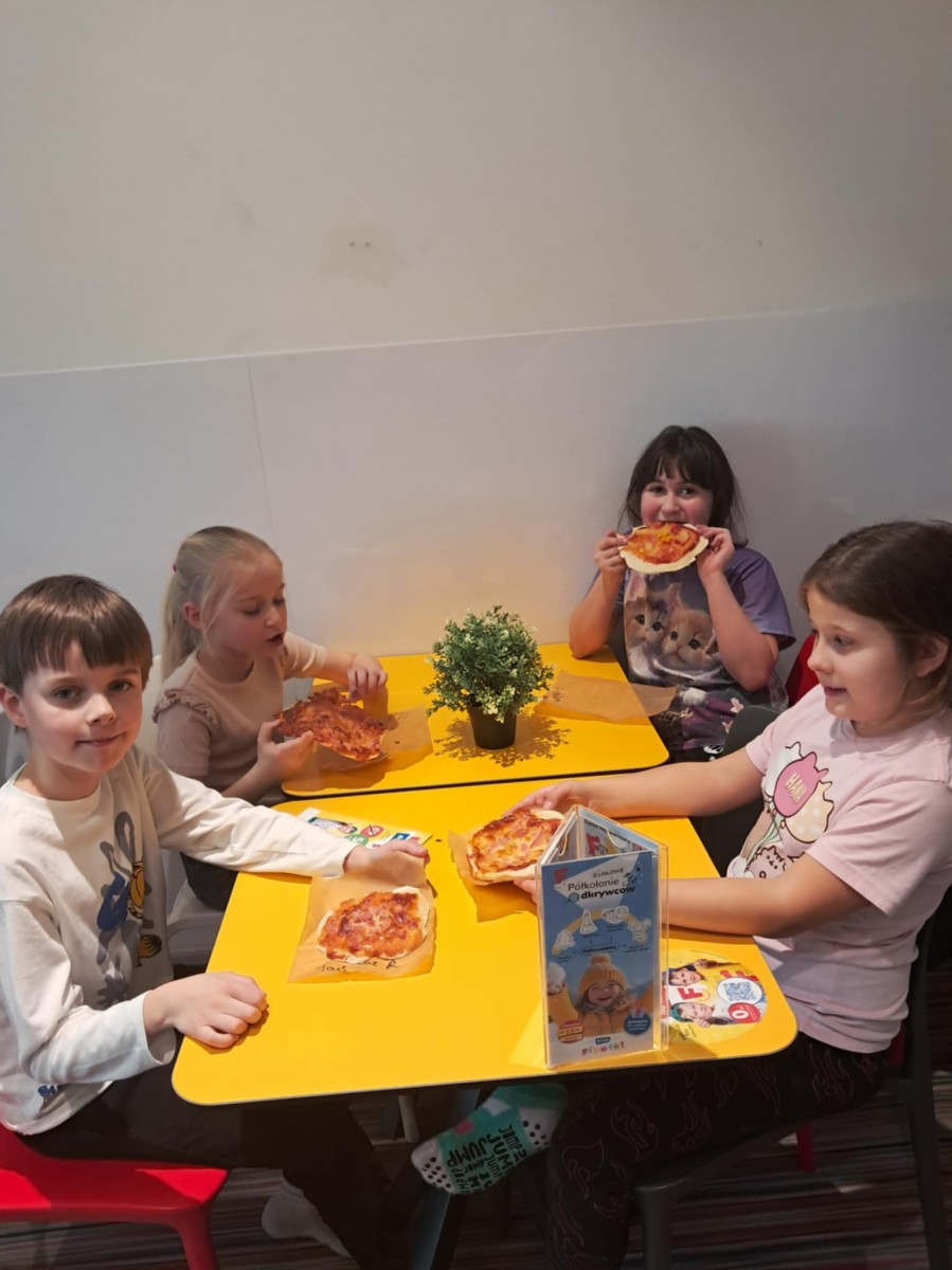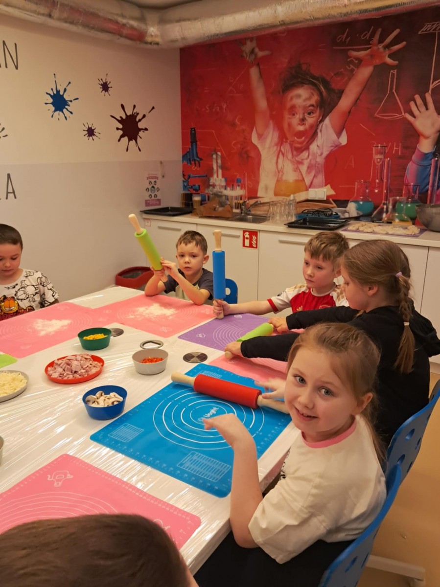 Wycieczka klasy 1a i 1d do Sali Zabaw Fikołki Kto potrafi robić fikołki? - My z całą pewnością i to jeden za drugim!!! Zabawa była przednia, a pizza we własnym wykonaniu - palce lizać