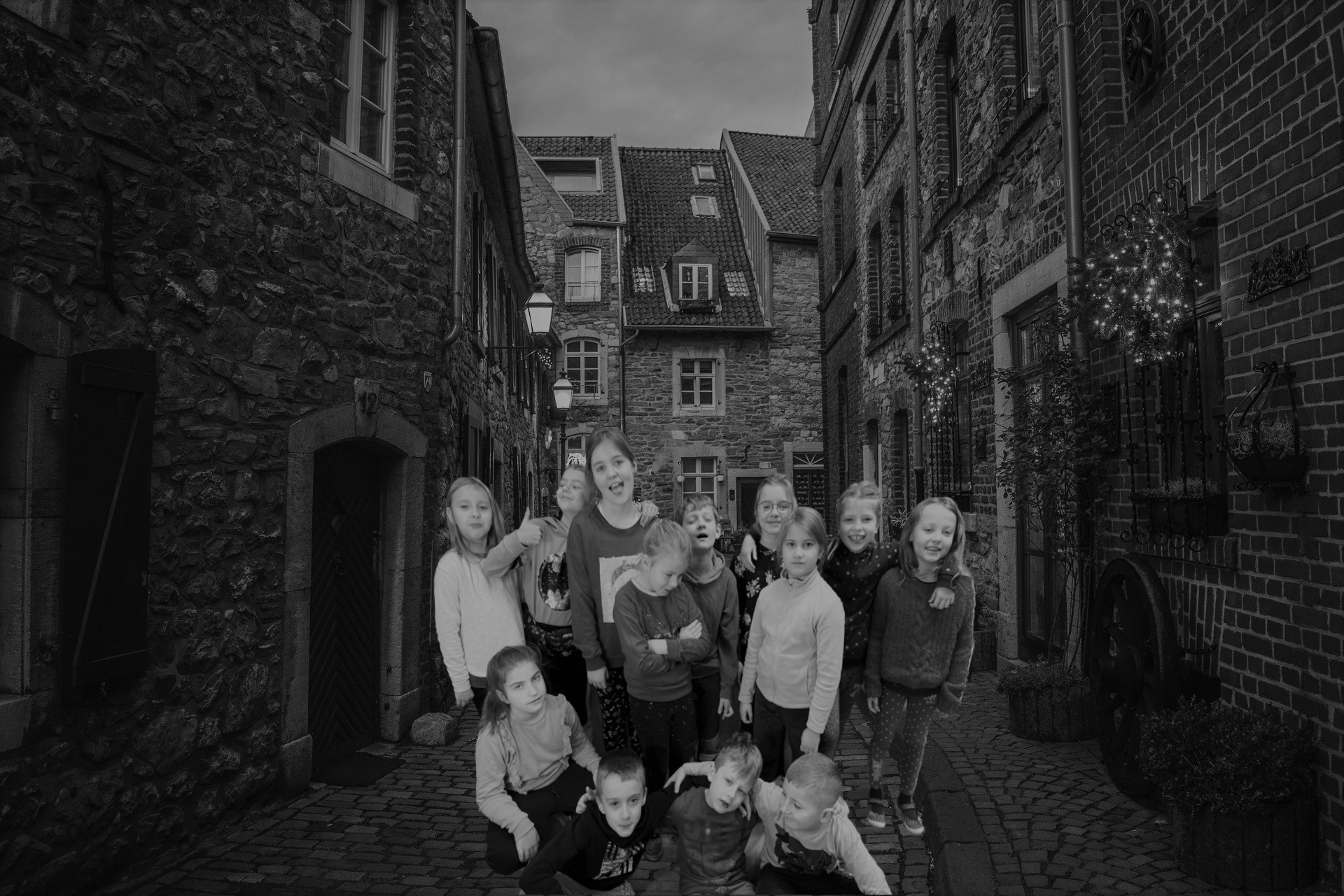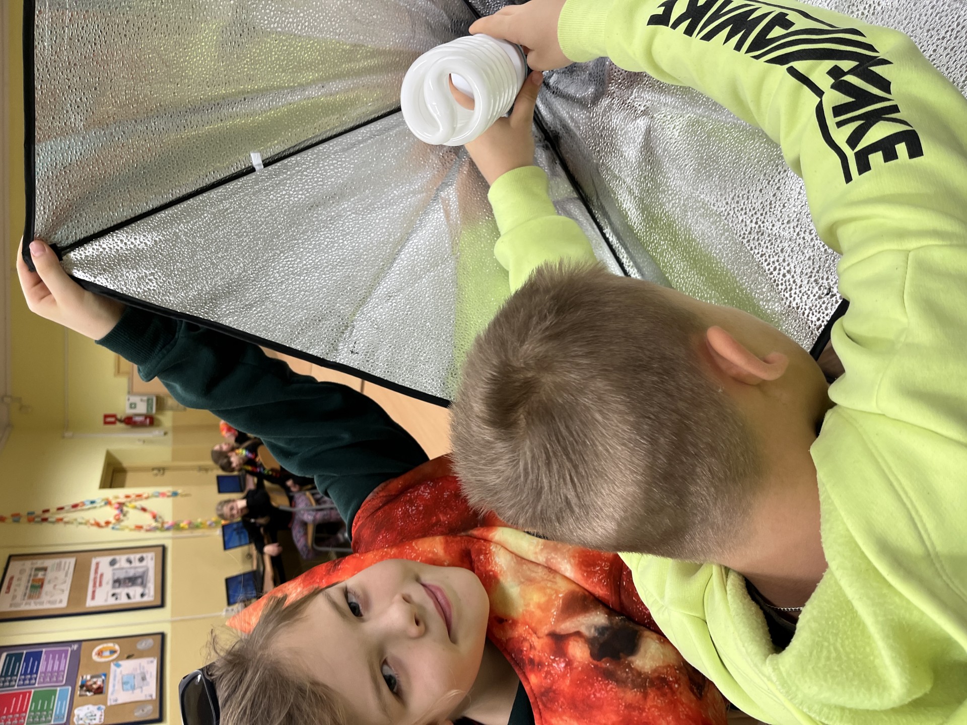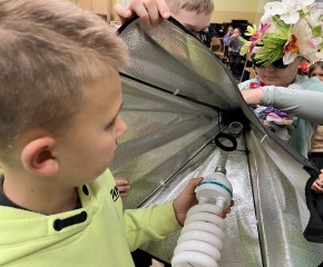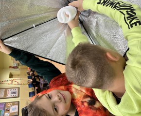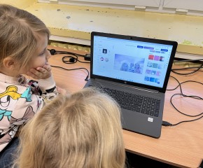 Korzystamy ze sprzętu fotograficznego. Najbardziej przypadły nam do gustu zabawy z green screen, dzięki któremu z sali lekcyjnej możemy się przenieść, gdzie tylko chcemy. Wystarczy, że zrobimy sobie zdjęcie na zielonym tle, a następnie w programach do obróbki zdjęć, zamiast zielonego tła wkleimy dowolną grafikę. Nie zawsze nam wszystko wychodzi idealnie, ale najważniejsze, że próbujemy.