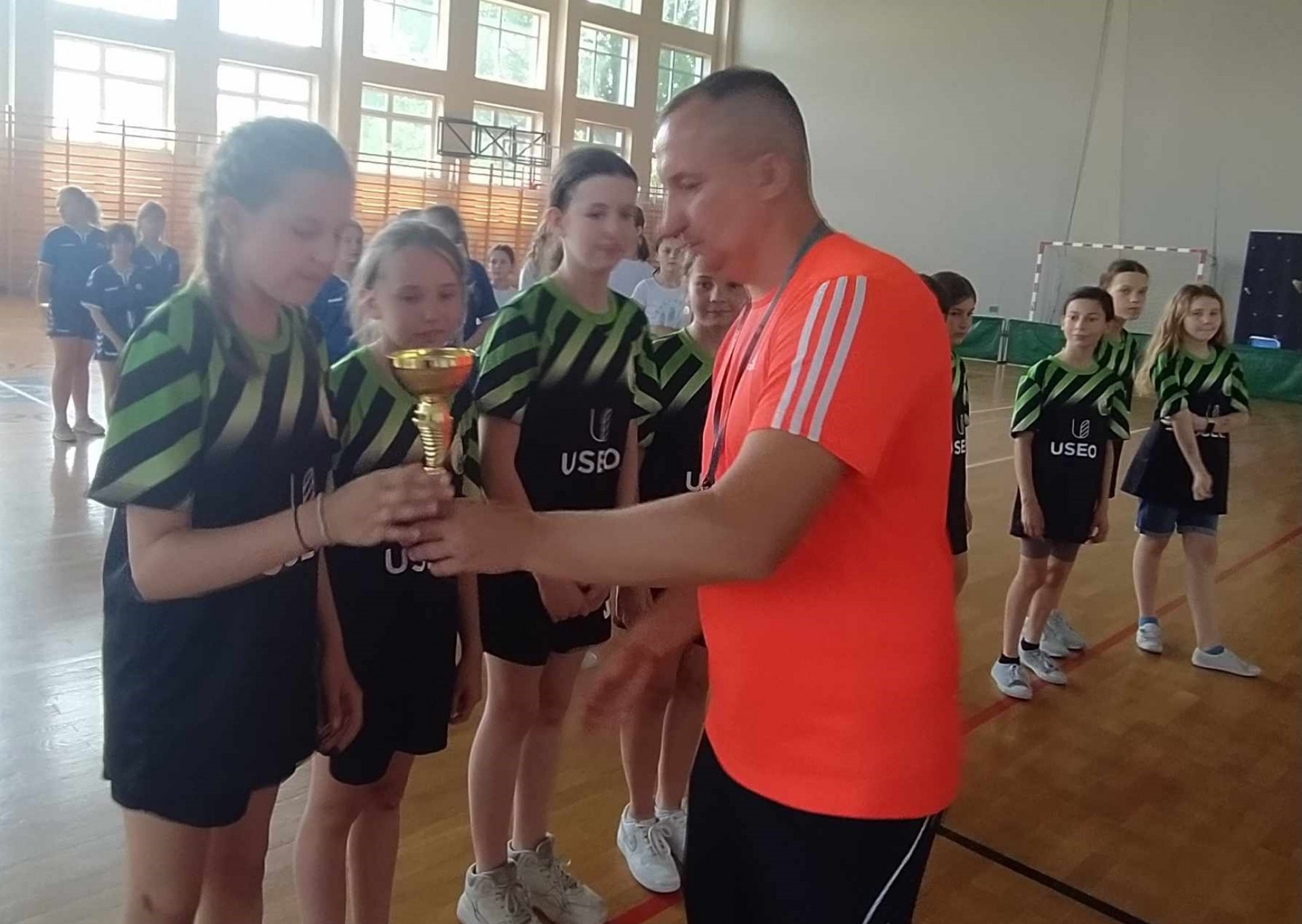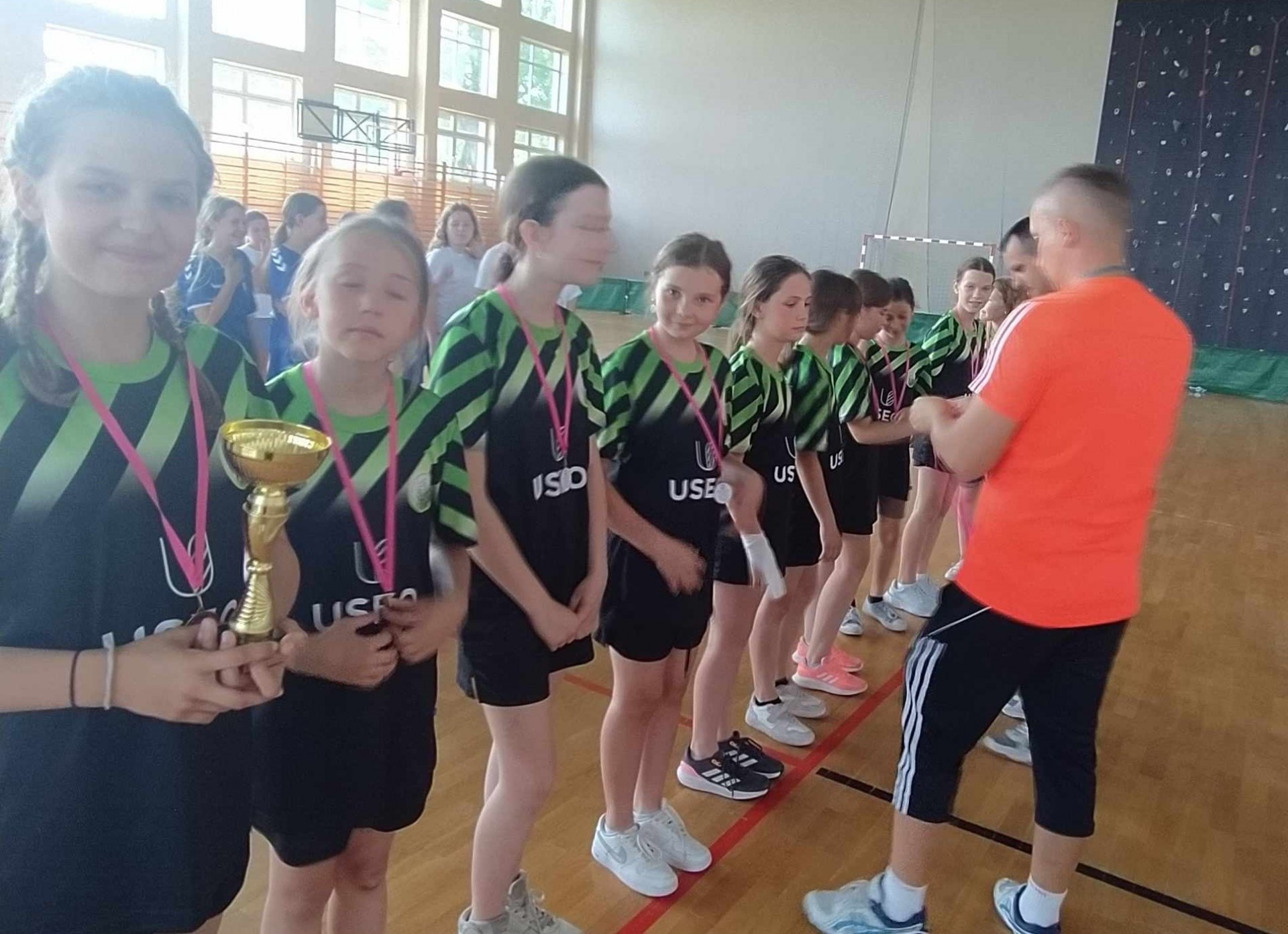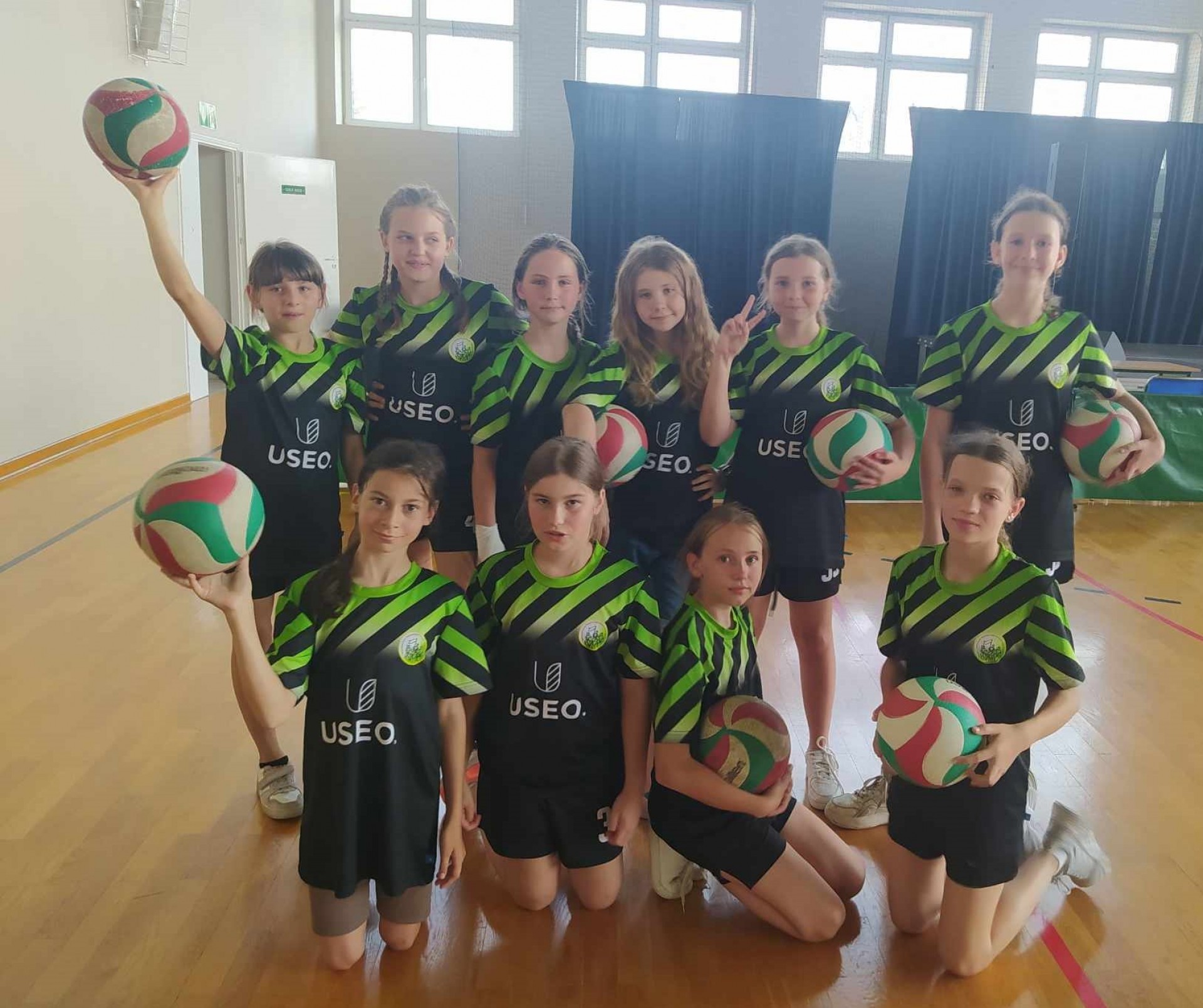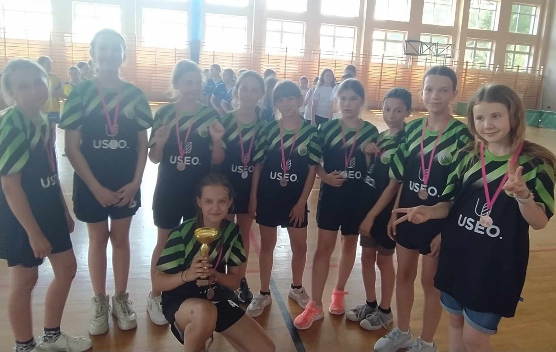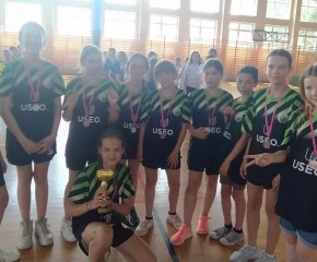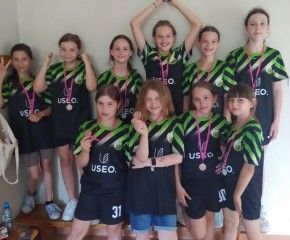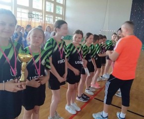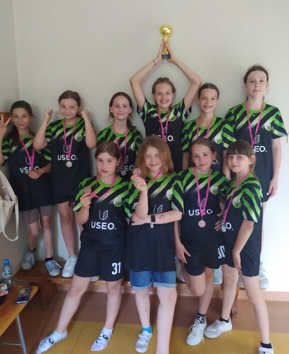Brązowe medalistki SP Dębe Wielkie w składzie: Lena Kąkol 4a - kapitan, Aleksandra Wieczorek 4c, Lena Rygielska 4a, Zofia Gańko 4c, Nina Ostrowska 4c, Helena Walerczak 4a, Weronika Król 4a, Michalina Turczyńska 4c, Julia Sasin 4c oraz nieobecna z powodu kontuzji Aleksandra Matak 4a i dzielna kibicka Pola Szymczuk 4c przygotowane przez p. Agatę Mika-Orłowską.