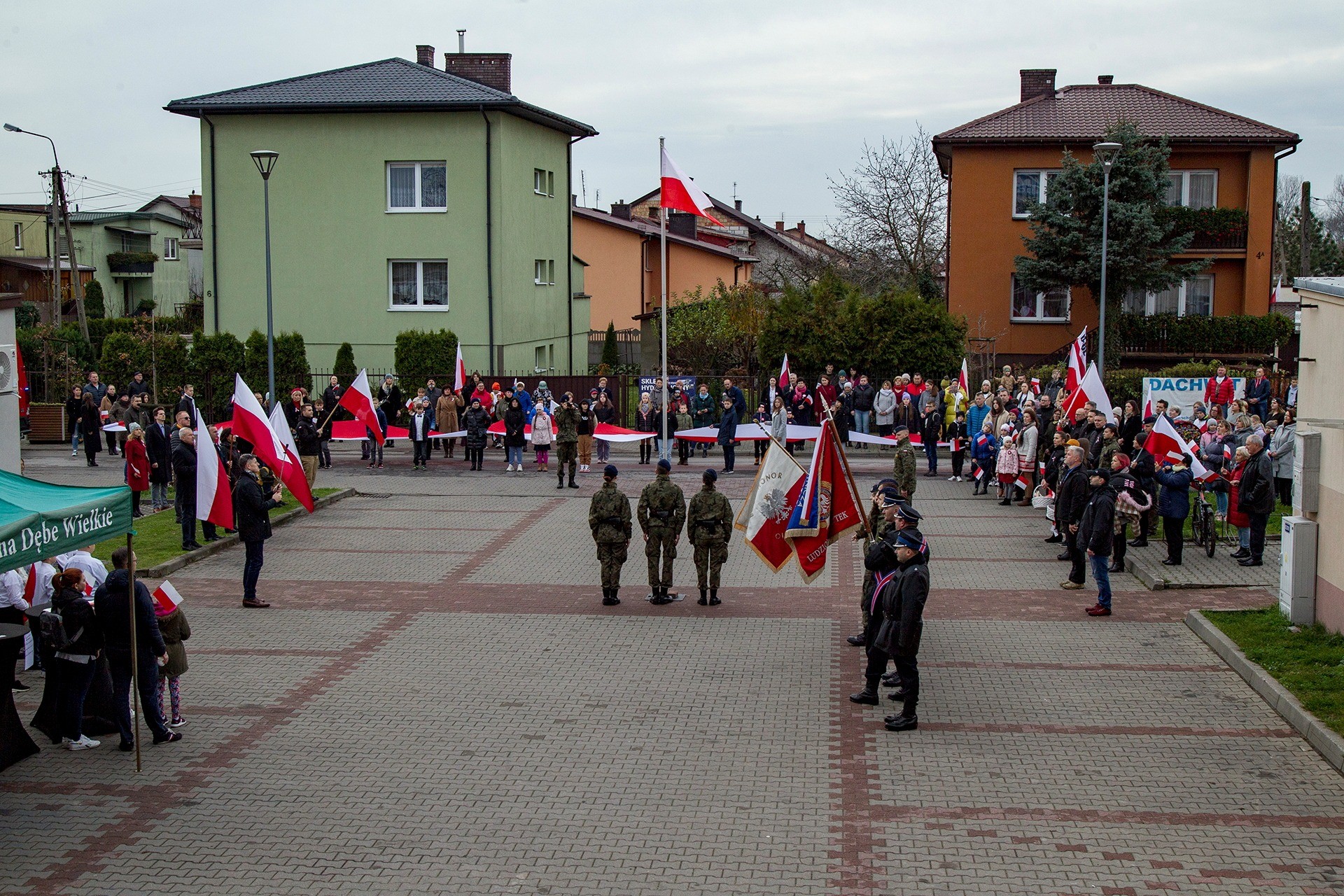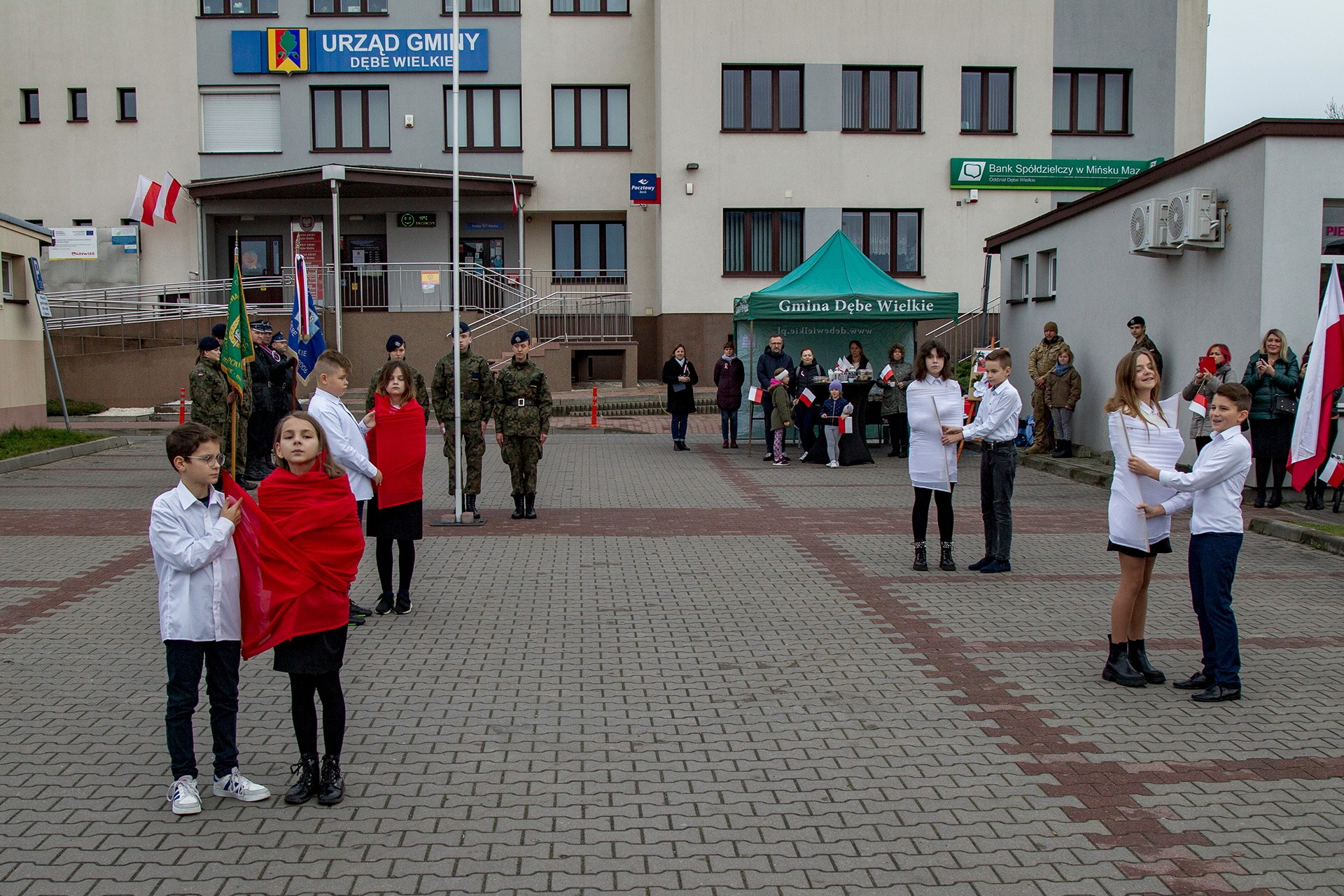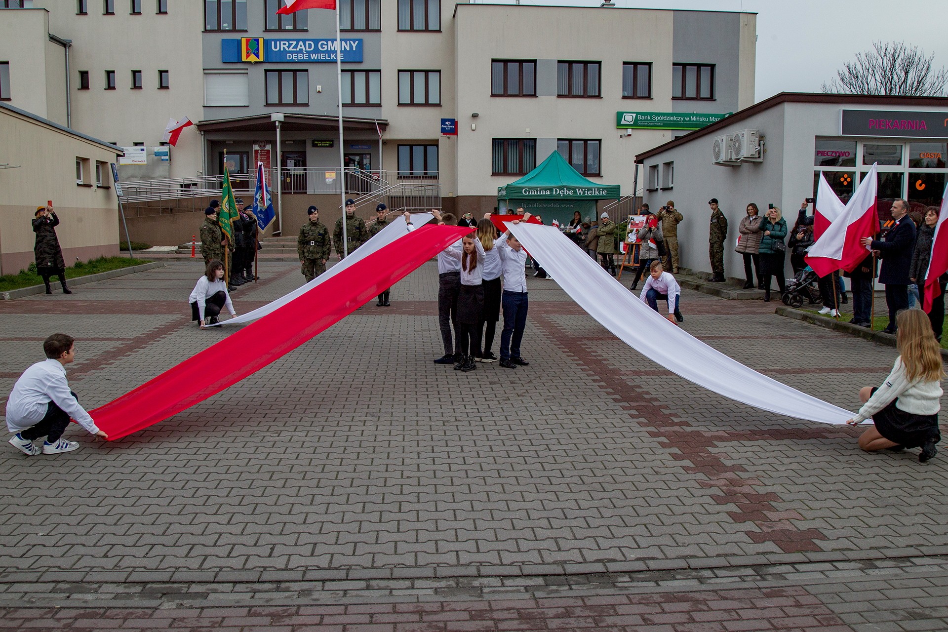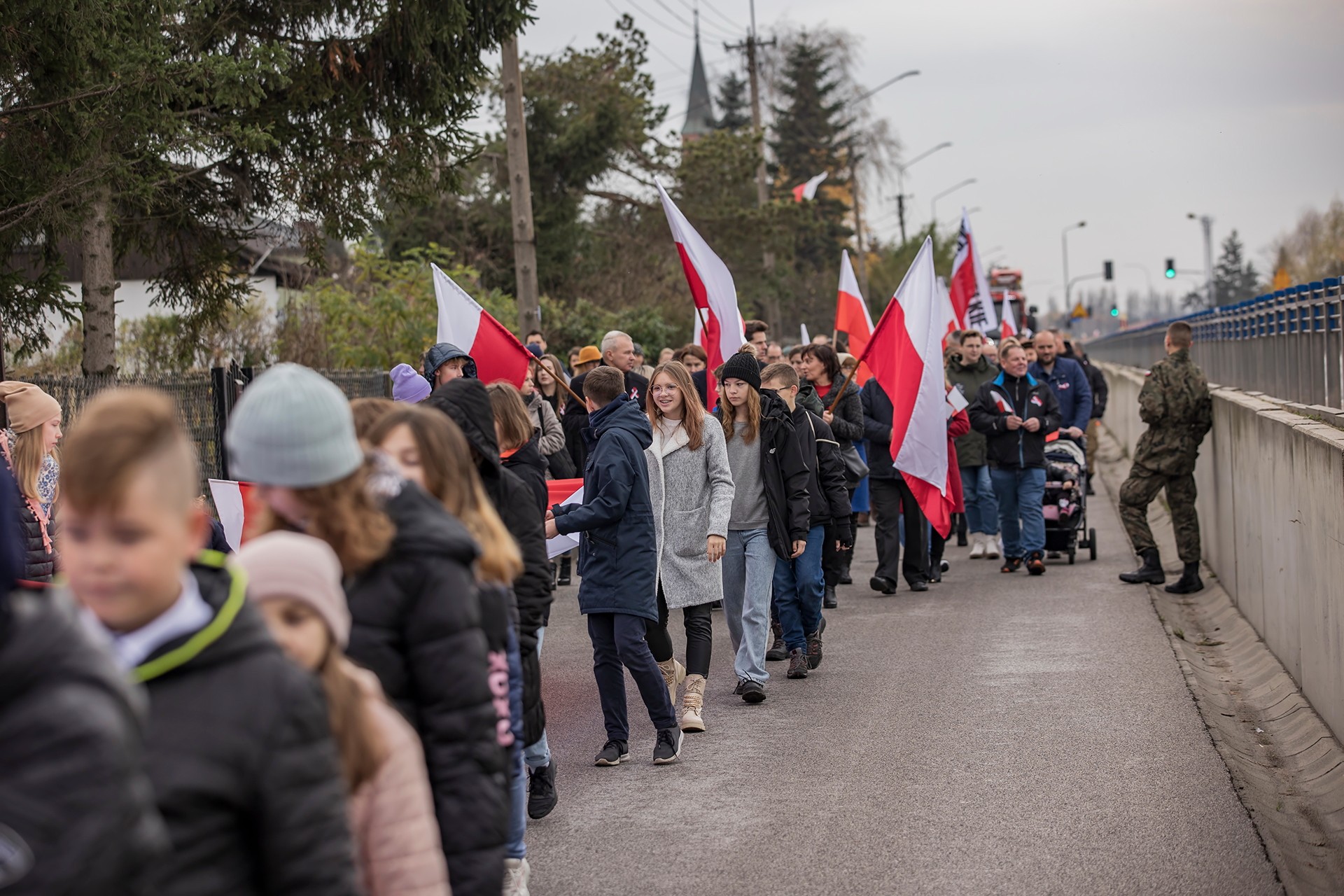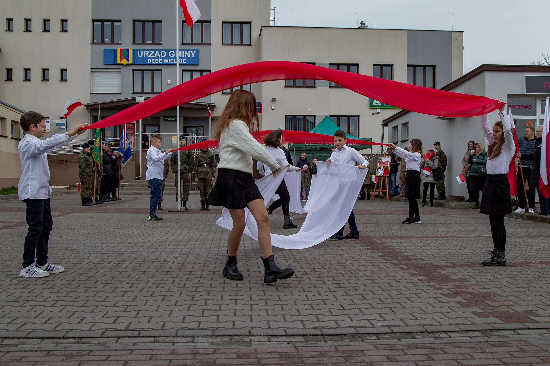 Marsz Niepodległości ulicami Dębego Wielkiego zakończony wspólnym odśpiewaniem hymnu państwowego oraz przepięknym tańcem z flagami w wykonaniu uczniów z klasy Vb.