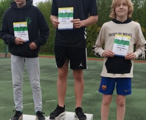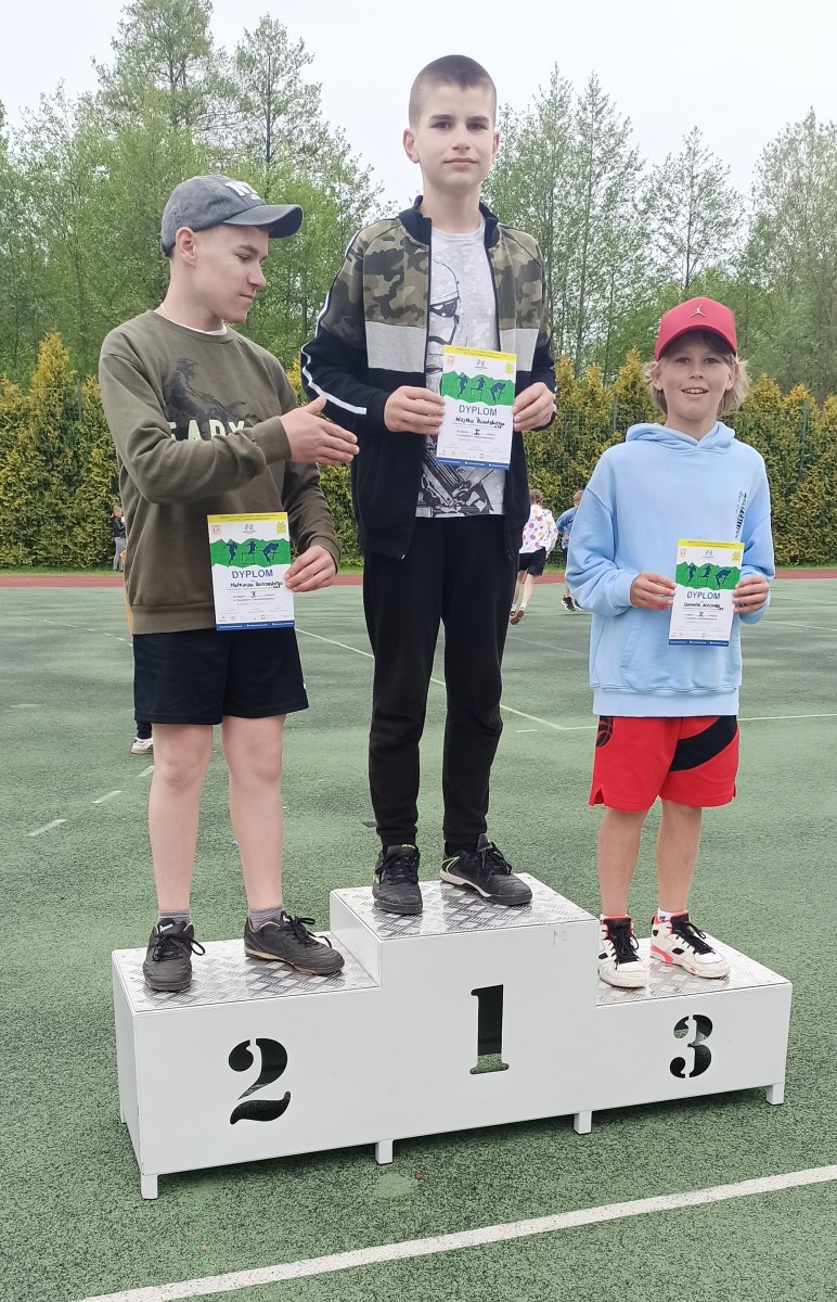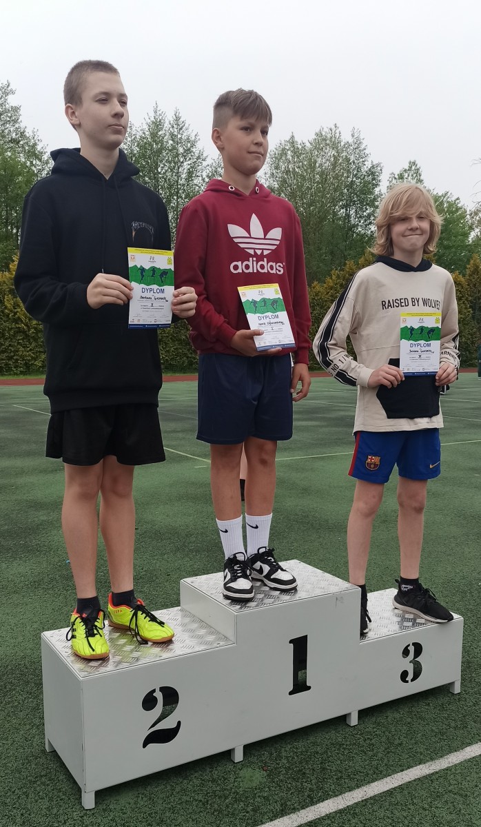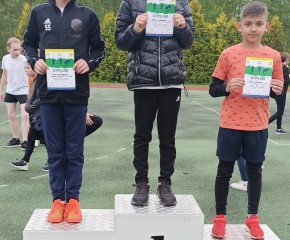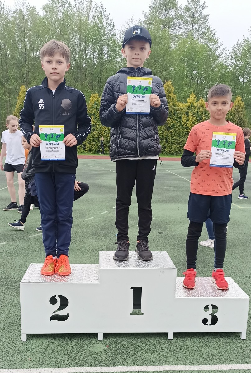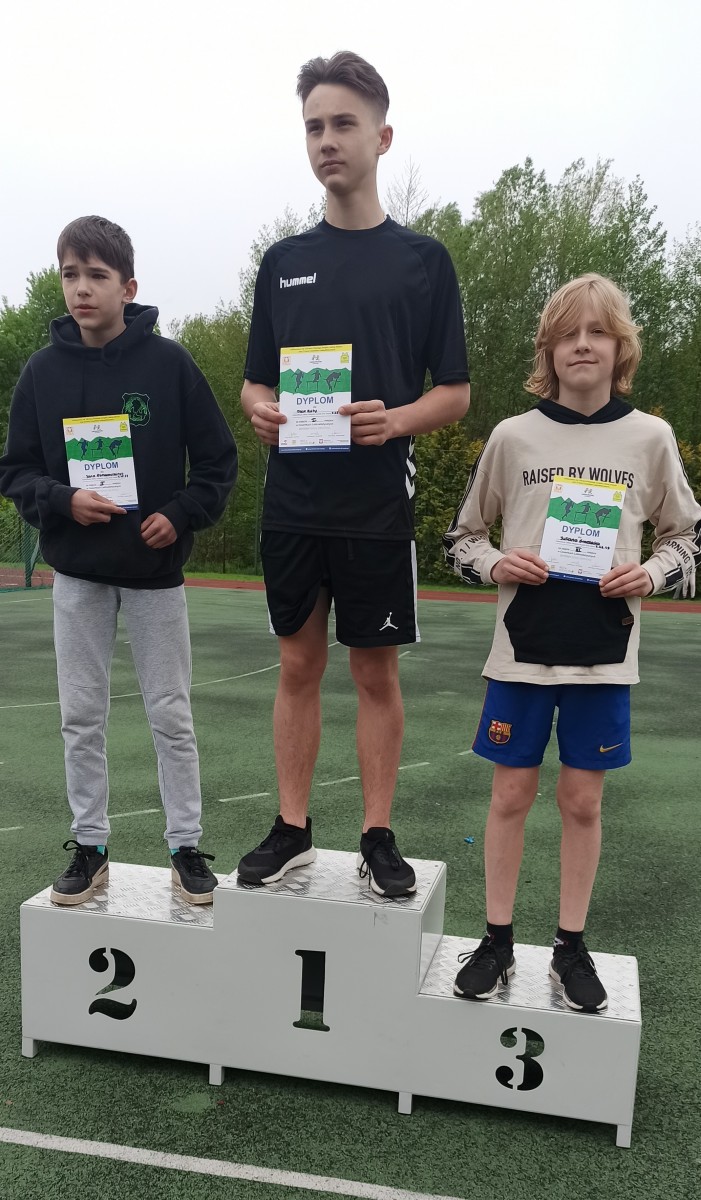 Julian Grzelak z klasy 6c zajął 3 miejsce w biegu na 1000m (3.46.99) i 3 miejsce w rzucie piłeczką palantową (28m)