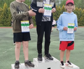 Damian Zawistowski z klasy 3b zajął 2 miejsce w biegu na 300m (56.14) i 3 miejsce w rzucie piłeczką palantową (26m)