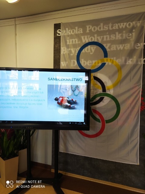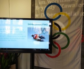 Przy głównym wejściu do szkoły można było zobaczyć prezentację dotyczącą konkurencji olimpijskich oraz ogromną flagę olimpijską.
