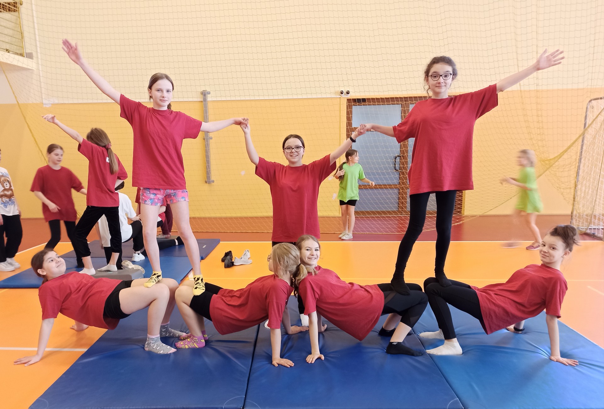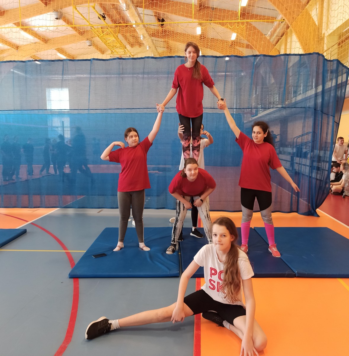 Z tej okazji na lekcjach wychowania fizycznego dziewczęta z klasy 6a i 6b ćwiczyły piramidy gimnastyczne wzorując się na najlepszych!