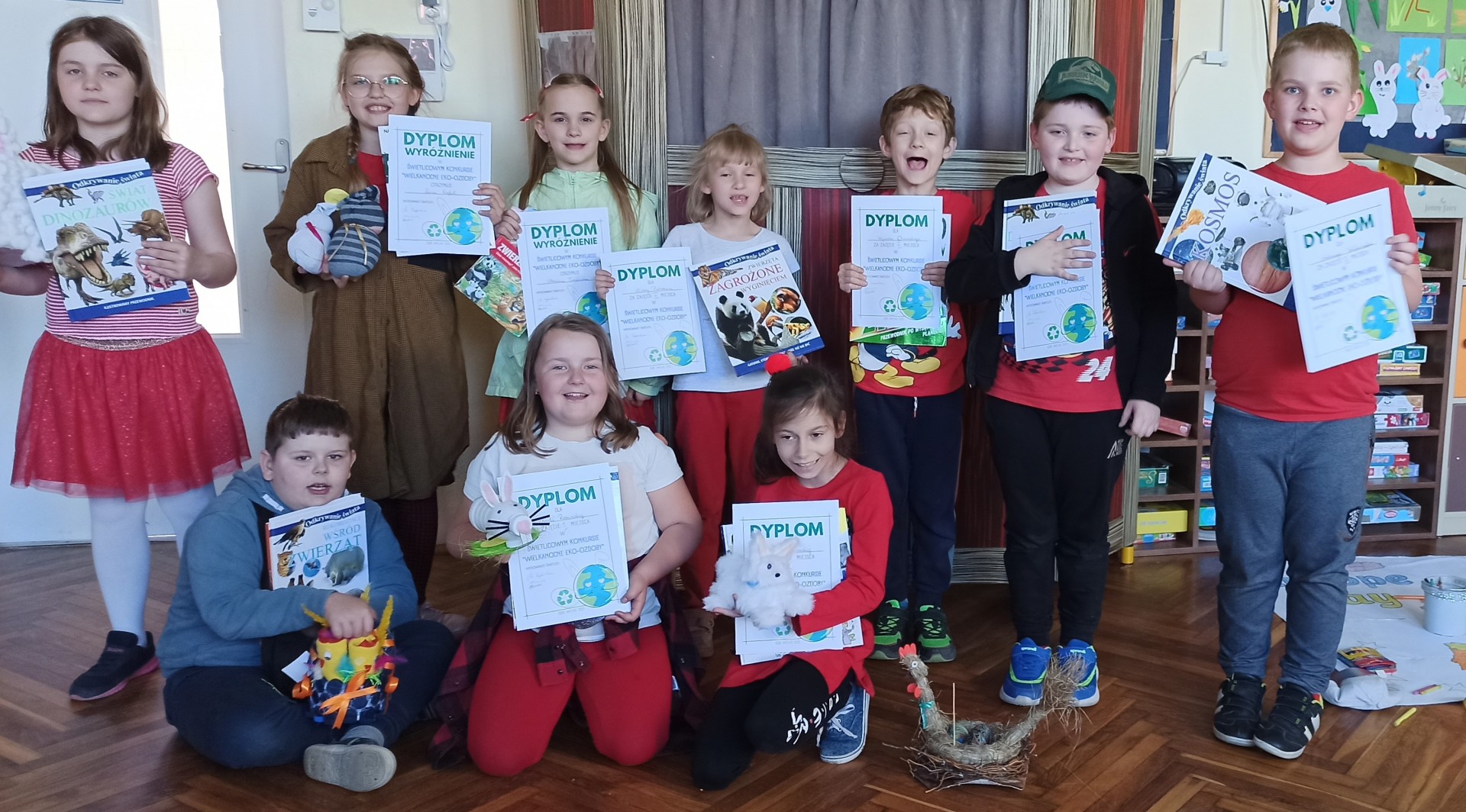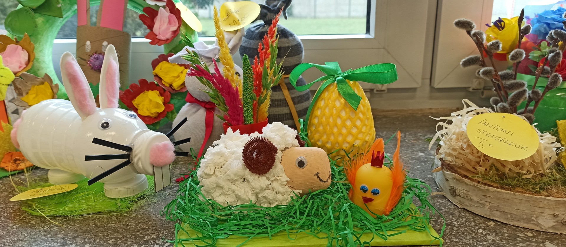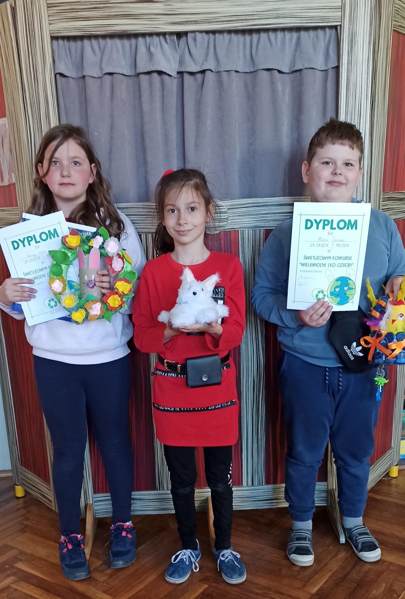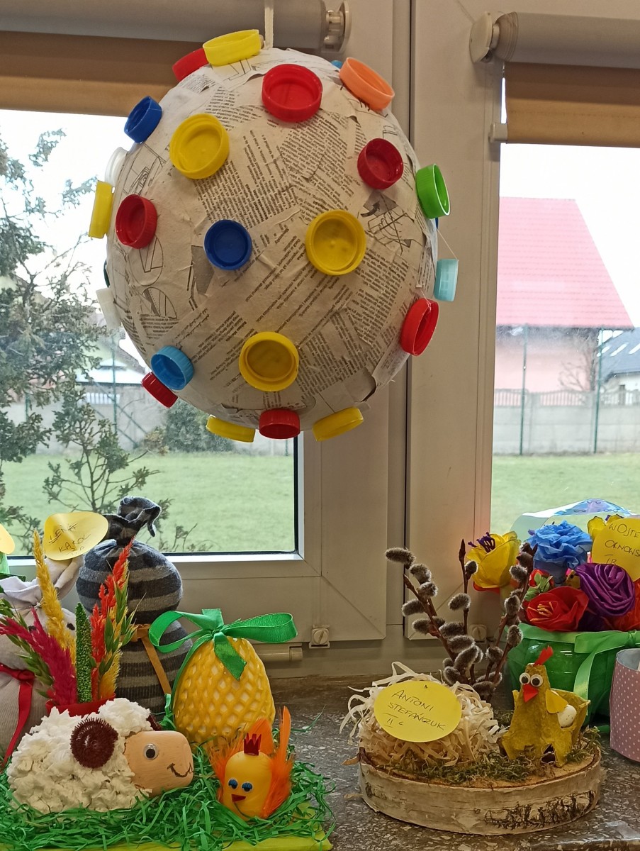 W miesiącu kwietniu odbył się w świetlicy szkolnej konkurs plastyczny pt. „Wielkanocne eko-ozdoby”. Przedmiotem konkursu było stworzenie pracy z wykorzystaniem materiałów wtórnych a tematem były Święta Wielkanocne. Głównymi celami konkursu było promowanie działań proekologicznych oraz pielęgnowanie tradycji wielkanocnych wśród uczniów naszej szkoły. Pragnęliśmy także przyczynić się do rozwoju kreatywności i wrażliwości estetyczno- plastycznej oraz kształtowania zdolności manualnych dzieci.