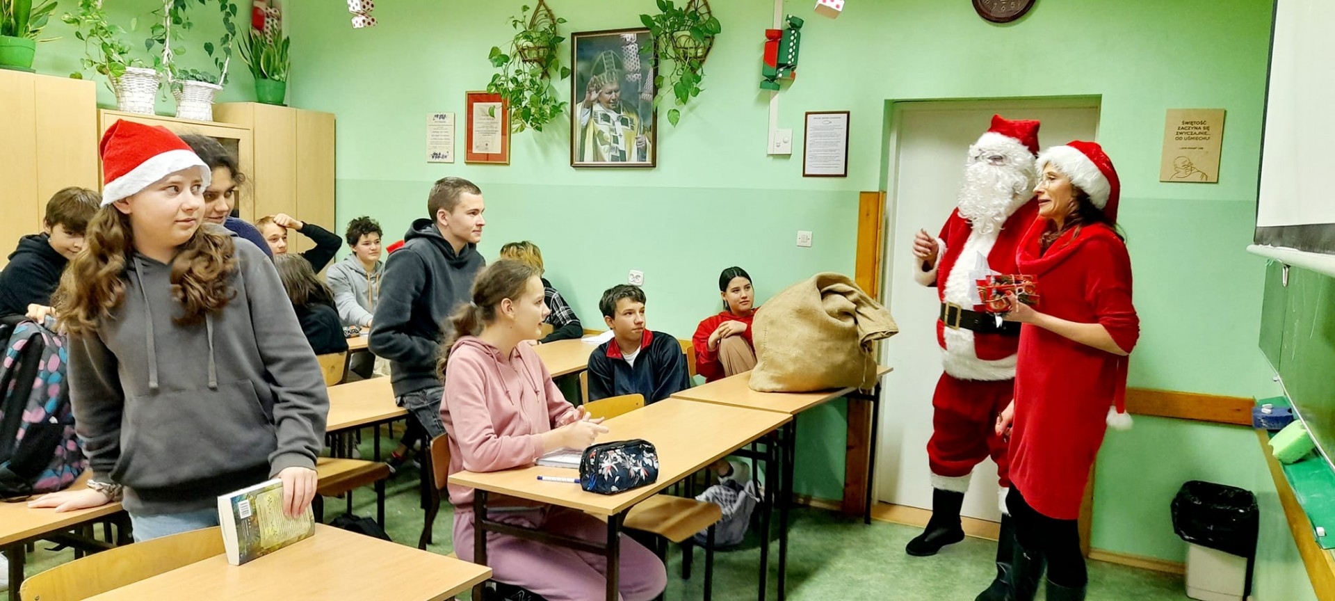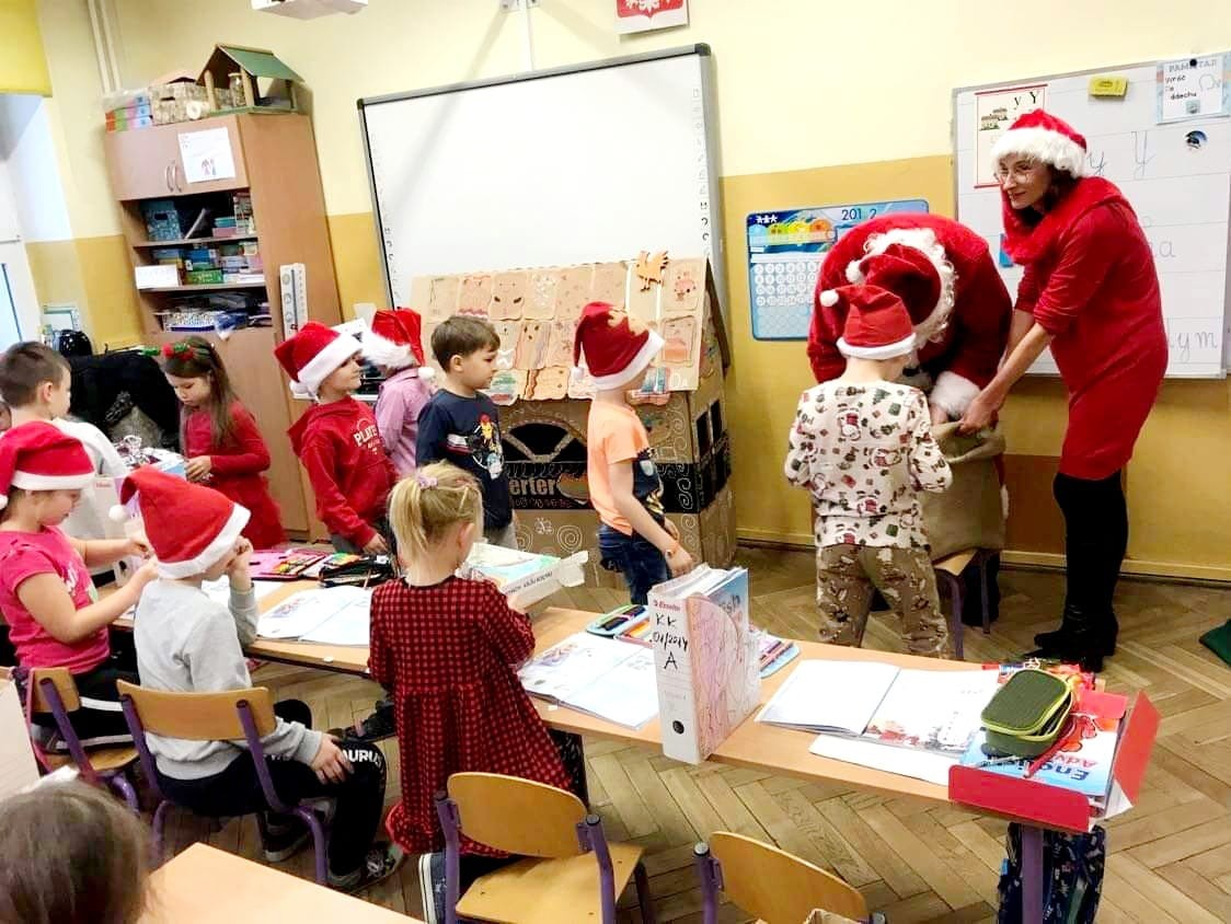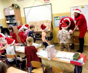 Szósty grudnia to data, którą zna każde dziecko i każdy dorosły. Mikołajki w naszej szkole już na stałe wpisały się w kalendarz wydarzeń. W tym roku również nie zabrakło radości i uśmiechów. Wszyscy uczniowie ubrani byli dziś w stroje z akcentem mikołajkowym. Był również Święty Mikołaj i Pani Mikołajowa, którzy rozdawali prezenty, zasponsorowane przez Radę Rodziców. Nie zabrakło dziś również gier i zabaw mikołajkowych. Magia świąt zawitała dziś w progi naszej szkoły.