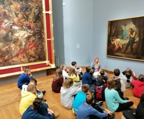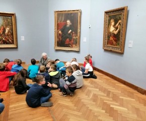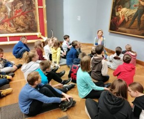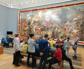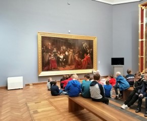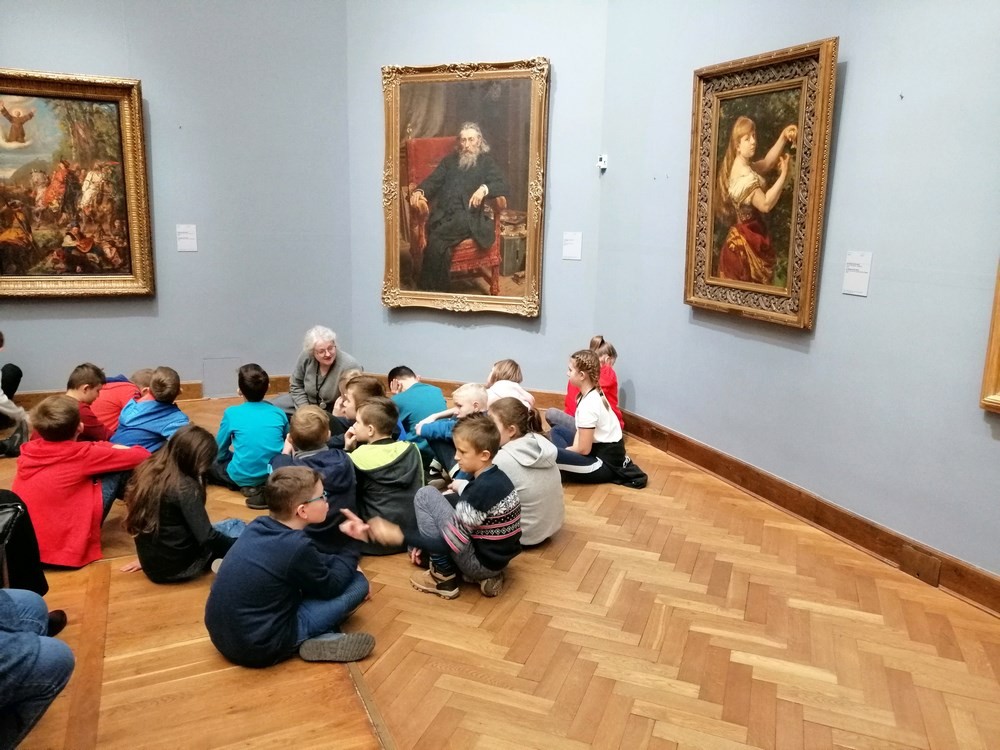 Kolejnym punktem programu wycieczki była lekcja historyczna w Muzeum Narodowym. Uczniowie zostali podzieleni na 3 grupy, a każda z nich zgłębiała inny temat: „Świat mitów”, „Królowie Polski” oraz „Jan Matejko i malarskie wizje przeszłości”.
