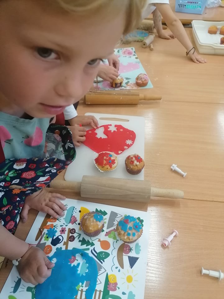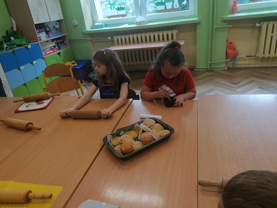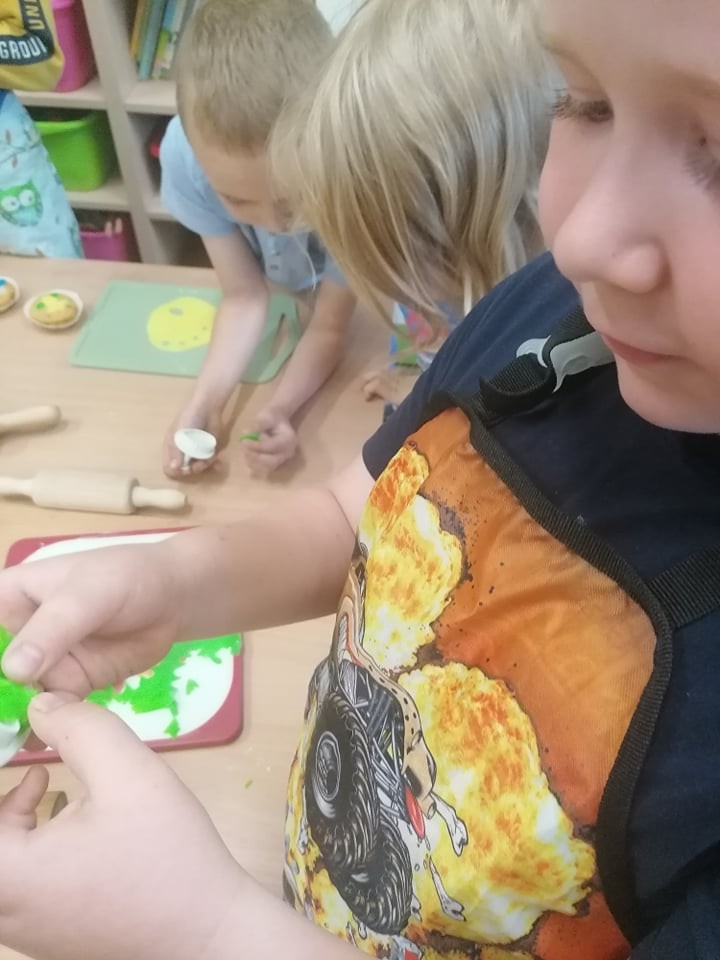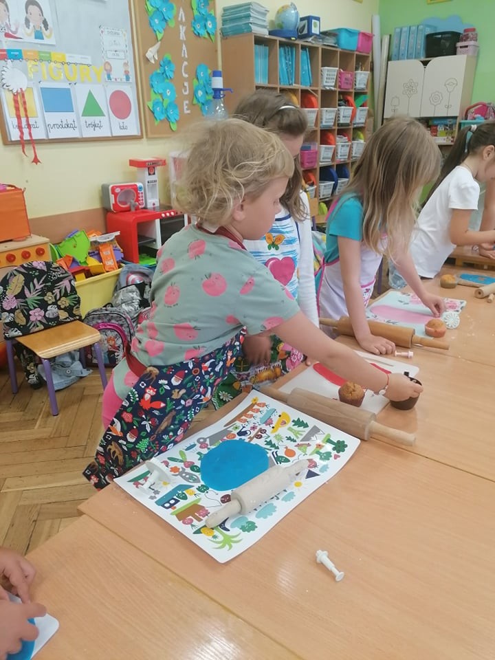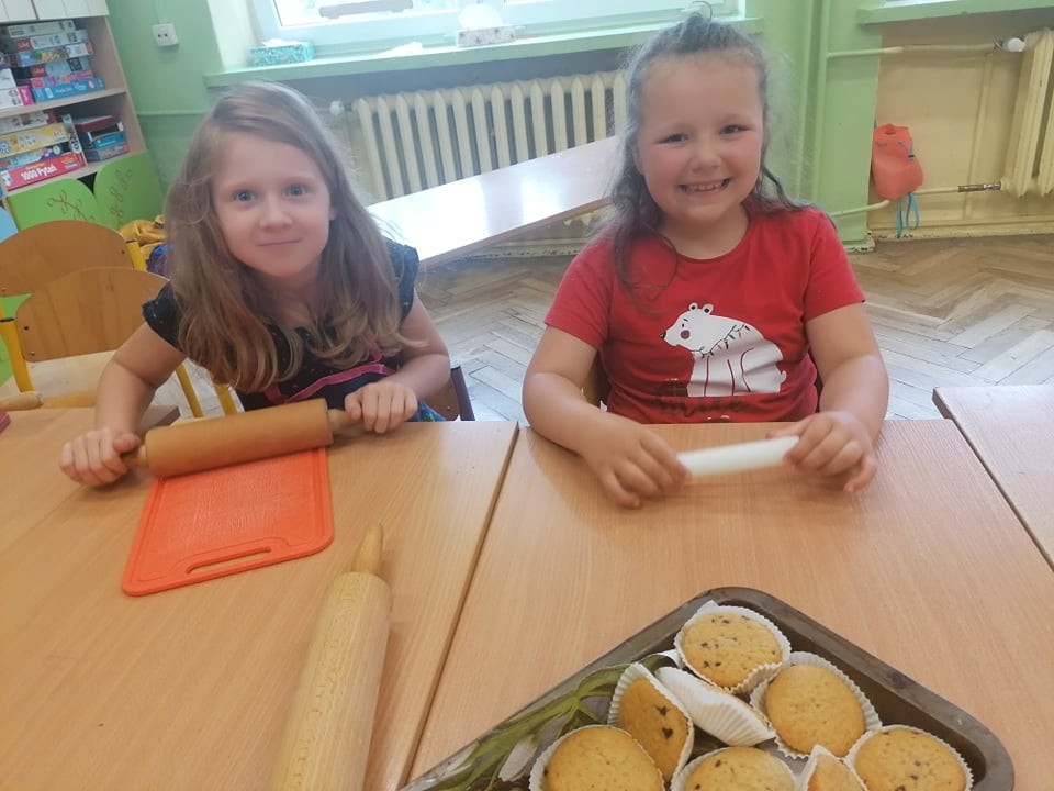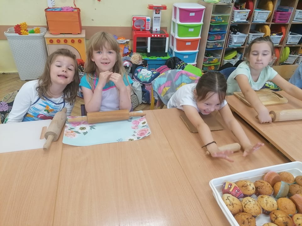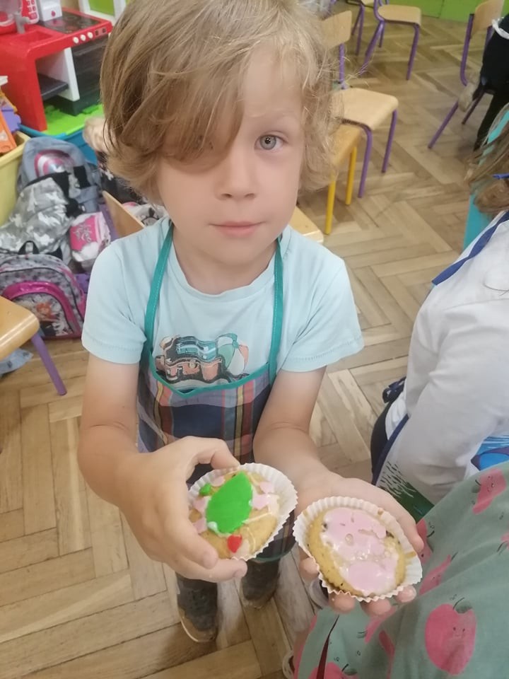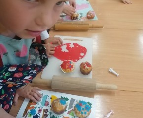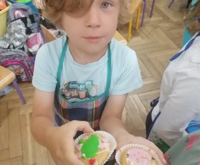 Grupa 0c pierwszy dzień lata uczciła dekorując babeczki lukrem plastycznym. W ruch ruszyły wałki, deseczki, fartuszki i mnustwo foremek. Było wesoło i kolorowo, ale przedewszystkim przepysznie!!!