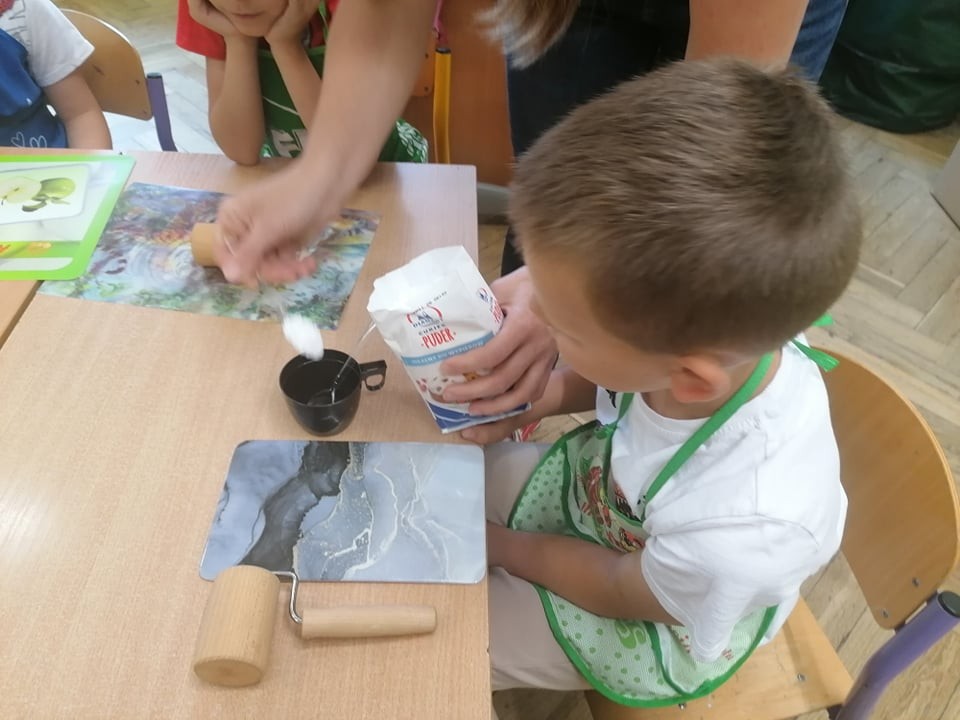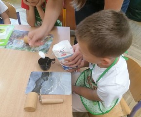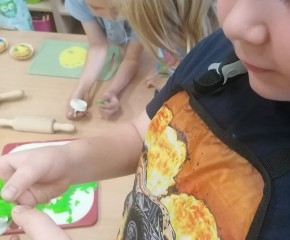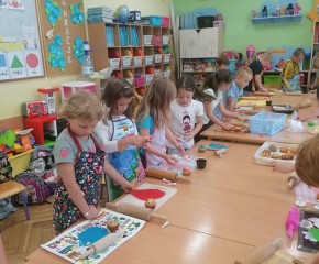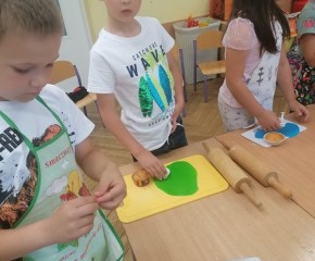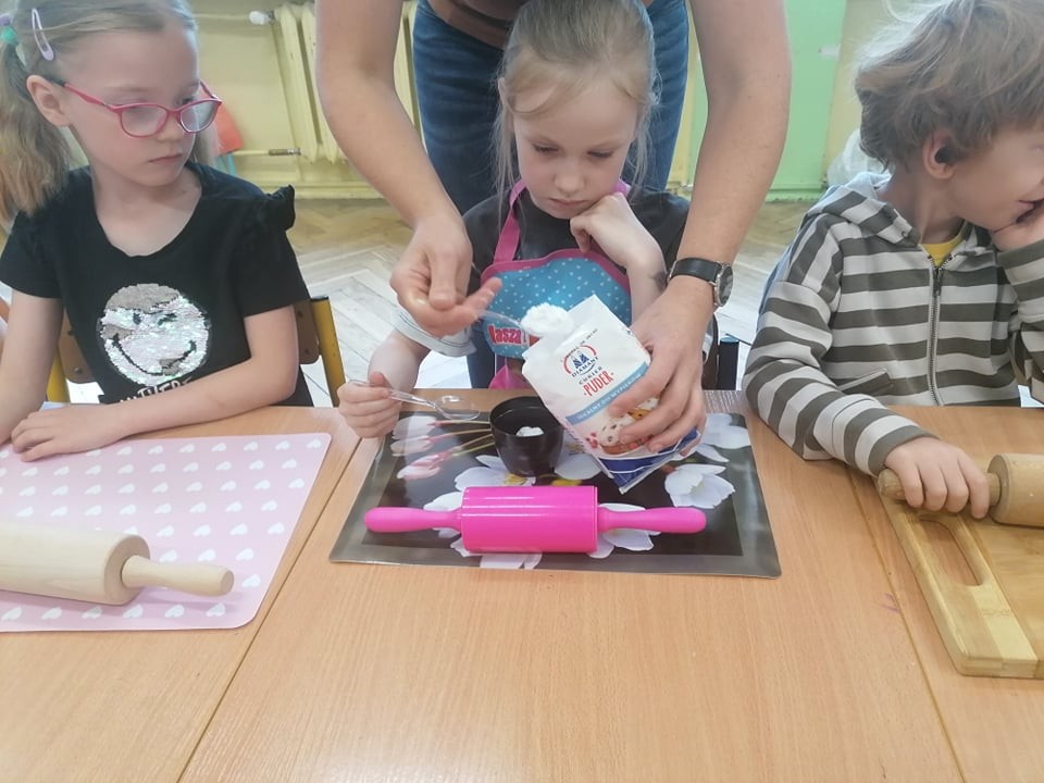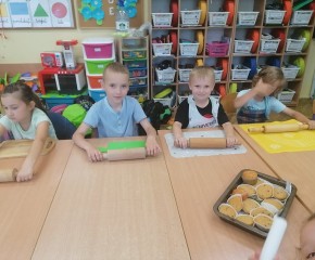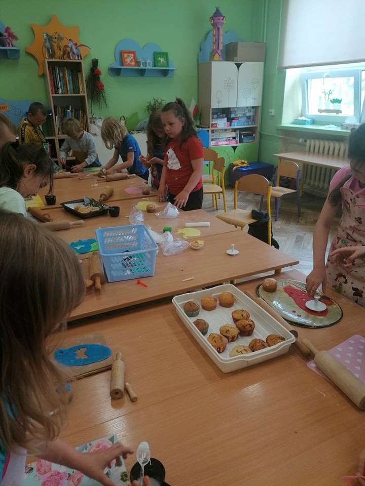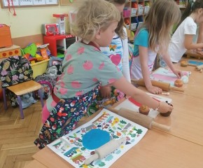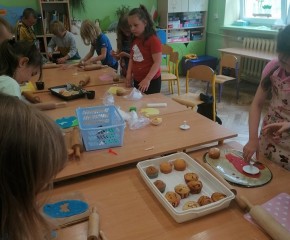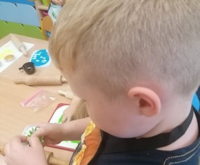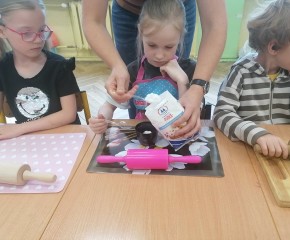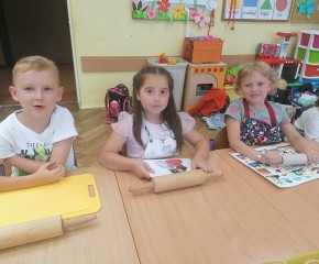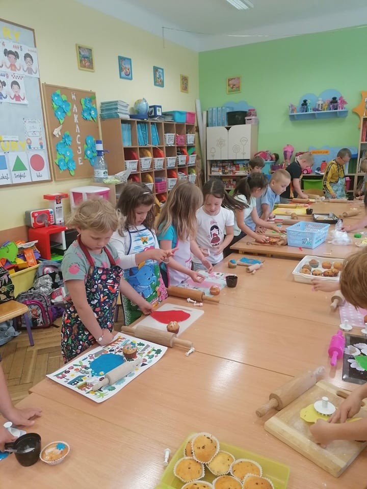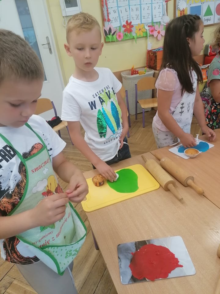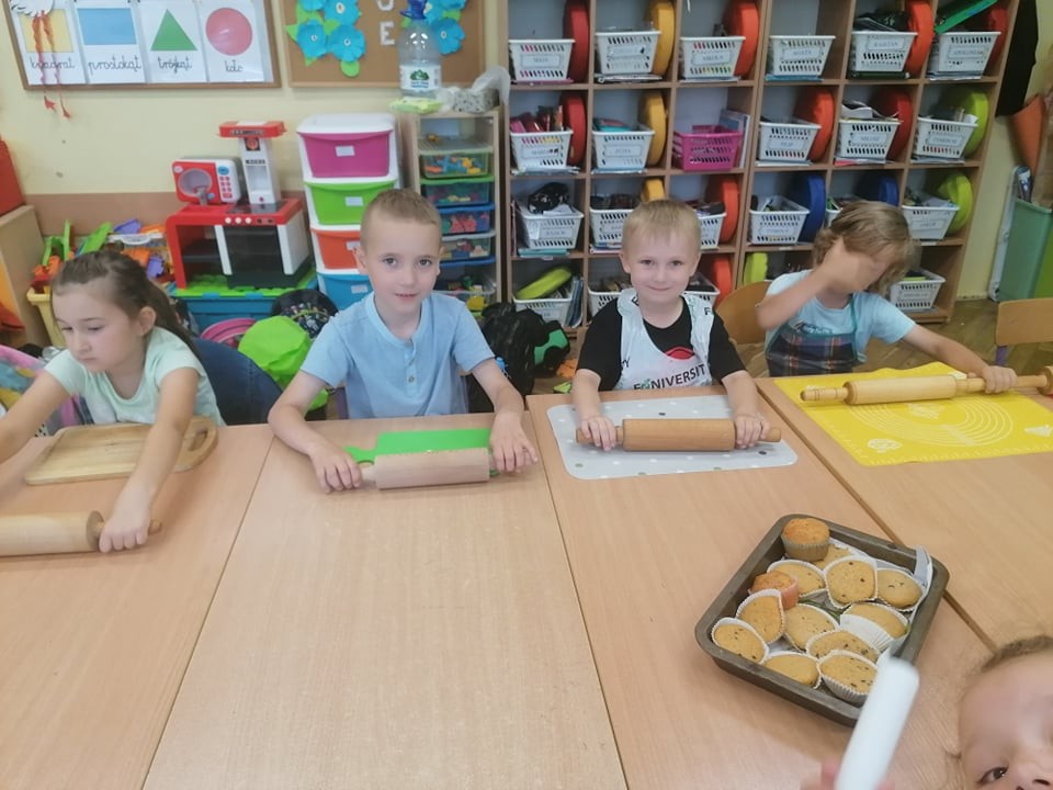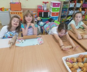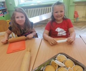 Grupa 0c pierwszy dzień lata uczciła dekorując babeczki lukrem plastycznym. W ruch ruszyły wałki, deseczki, fartuszki i mnustwo foremek. Było wesoło i kolorowo, ale przedewszystkim przepysznie!!!