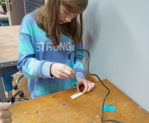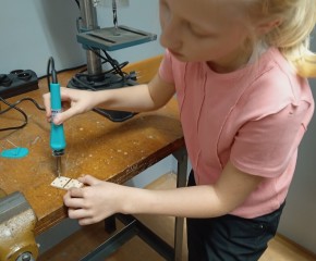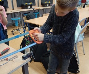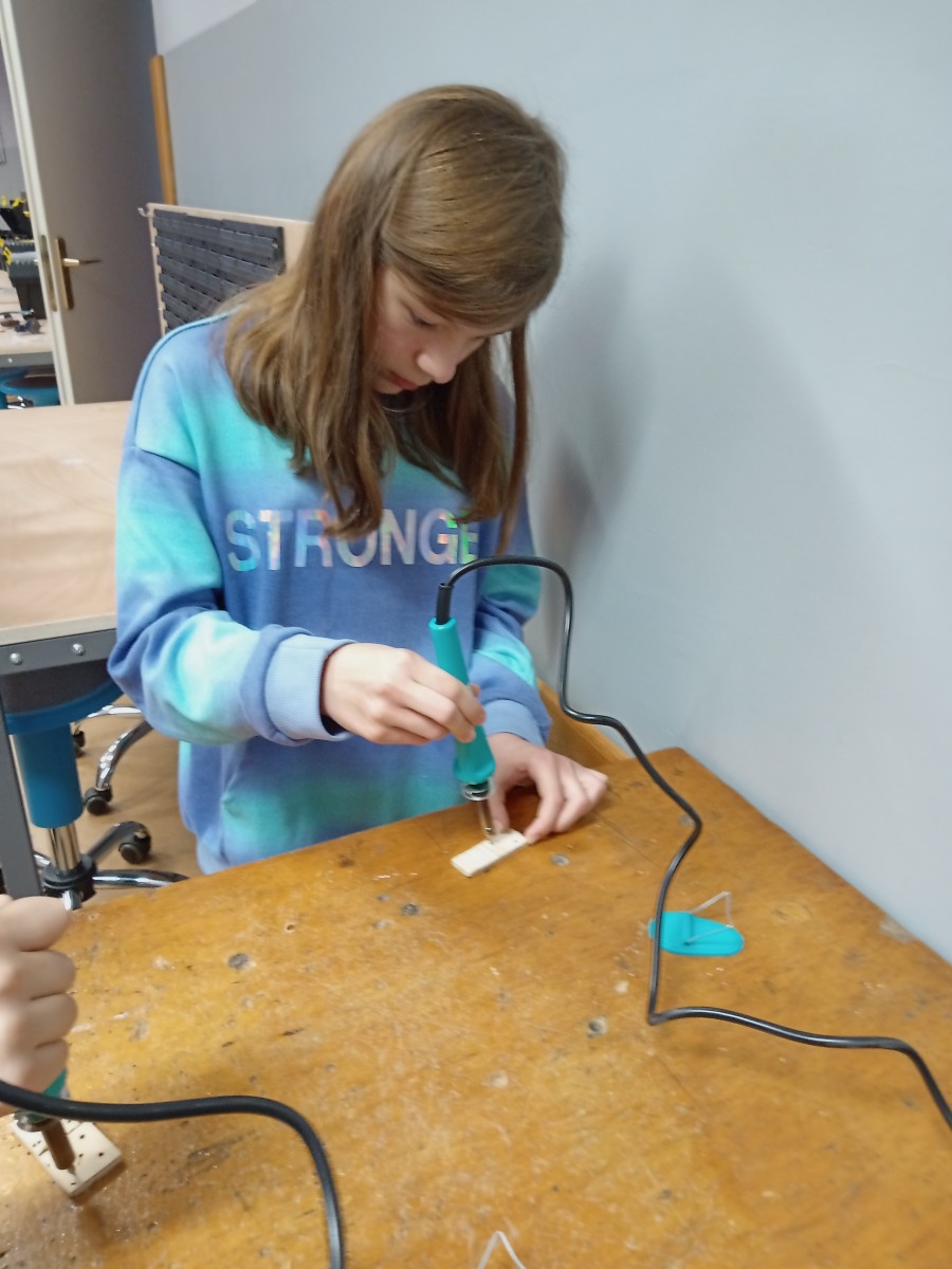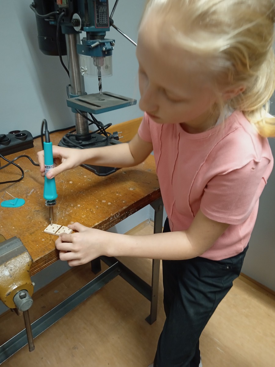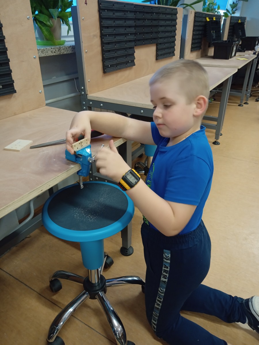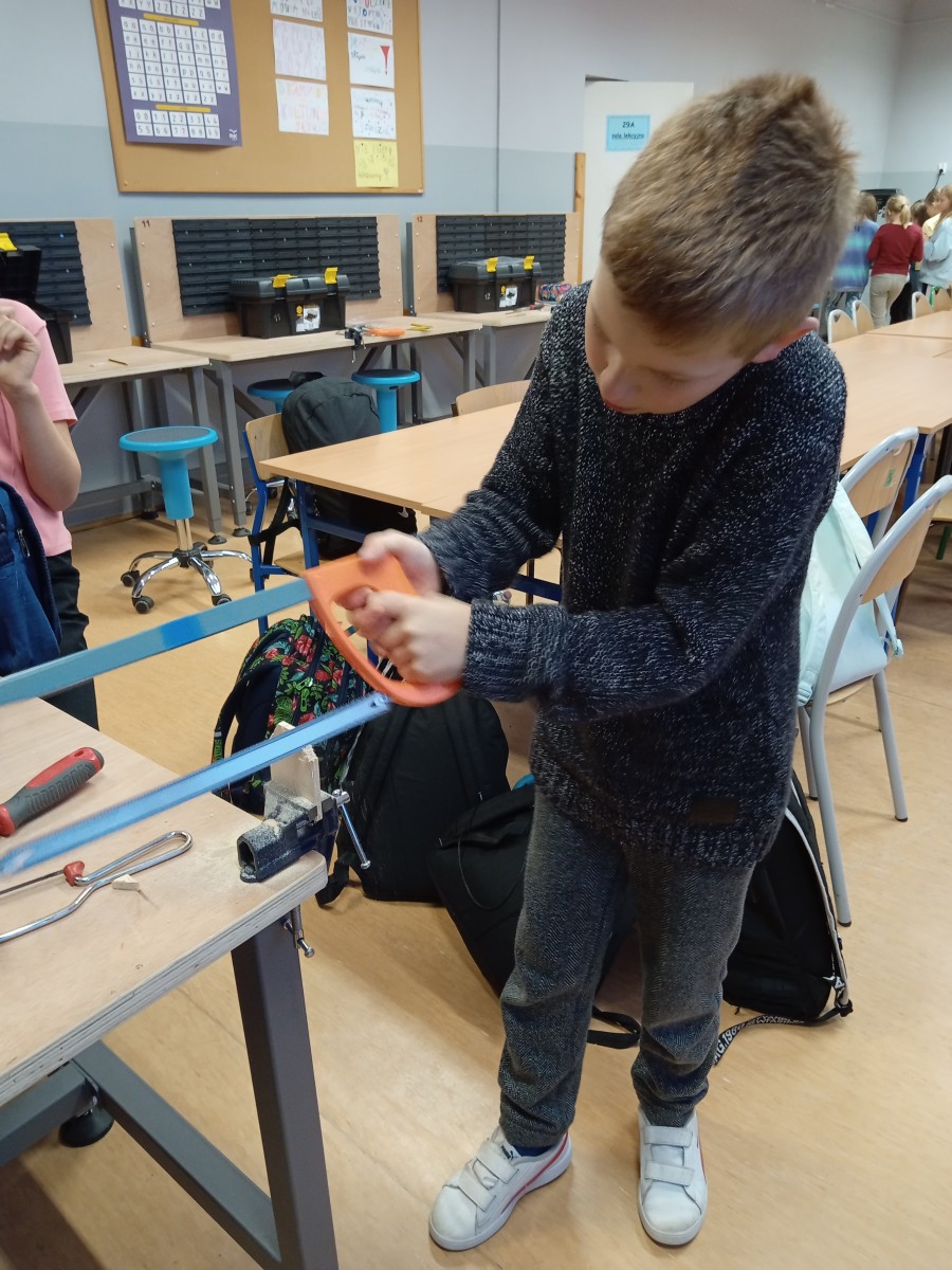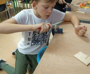 W listopadzie w ramach projektu „Laboratoria przyszłości” klasa IV a na lekcjach techniki wykonywała popularną grę domino. Wykorzystano do tego celu narzędzia, które szkoła otrzymała w ramach projektu. W ruch poszły:piły, pilniki, imadła, linijki, kątowniki i wypalarki do drewna. Na efekt końcowy musimy poczekać jeszcze kilka lekcji i zabieramy się do wykonywania choinek ze sklejki. Zajęcia z wykorzystaniem prostych narzędzi bardzo podobają się uczniom i dają satysfakcję, gdy samodzielnie można coś wykonać.