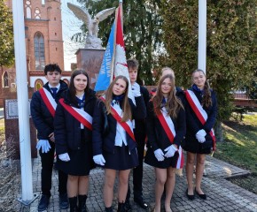 W ostatnich dniach reprezentacja naszej szkoły na czele z Panią Dyrektor dwukrotnie wzięła udział w uroczystościach patriotycznych.
