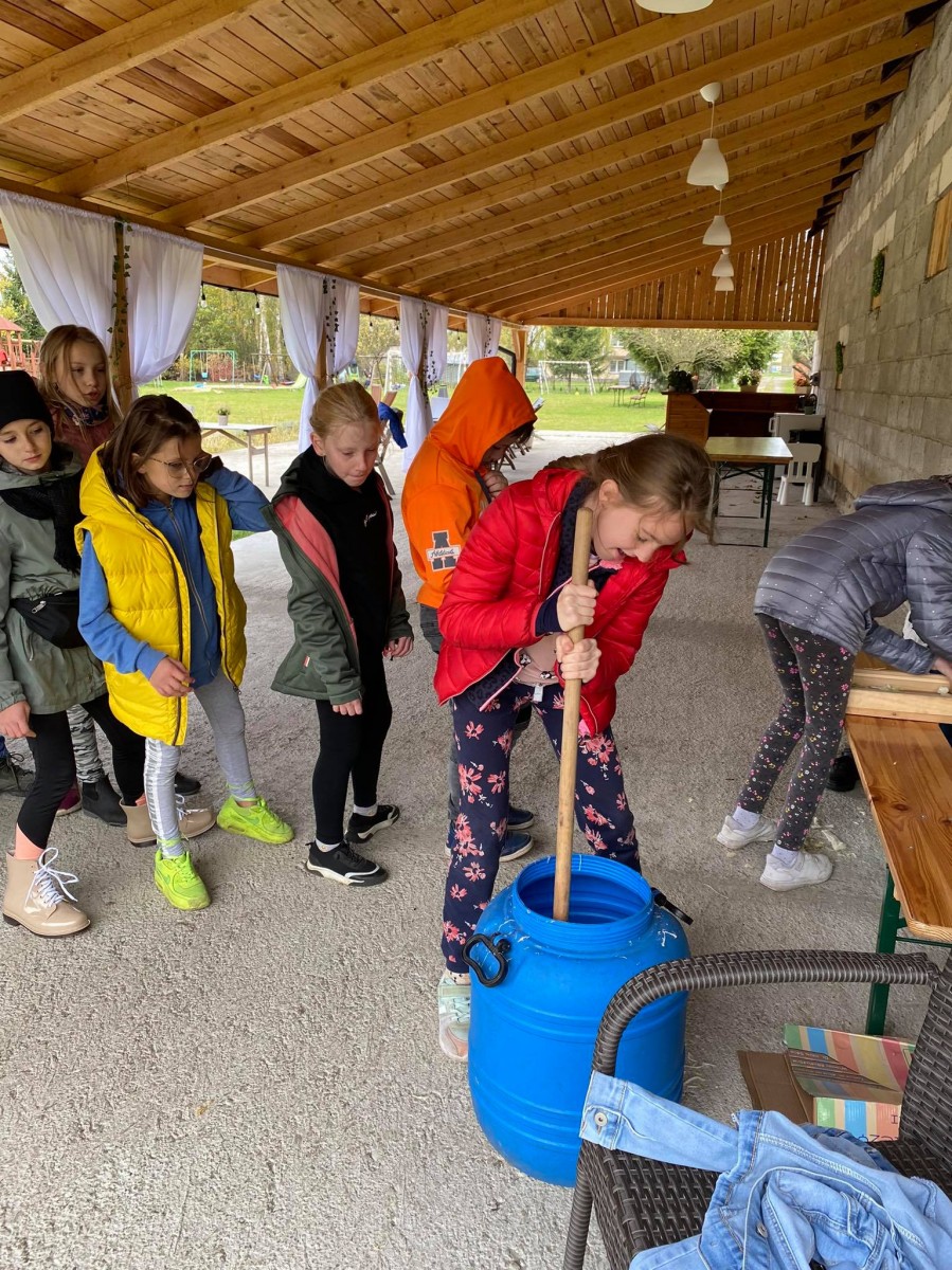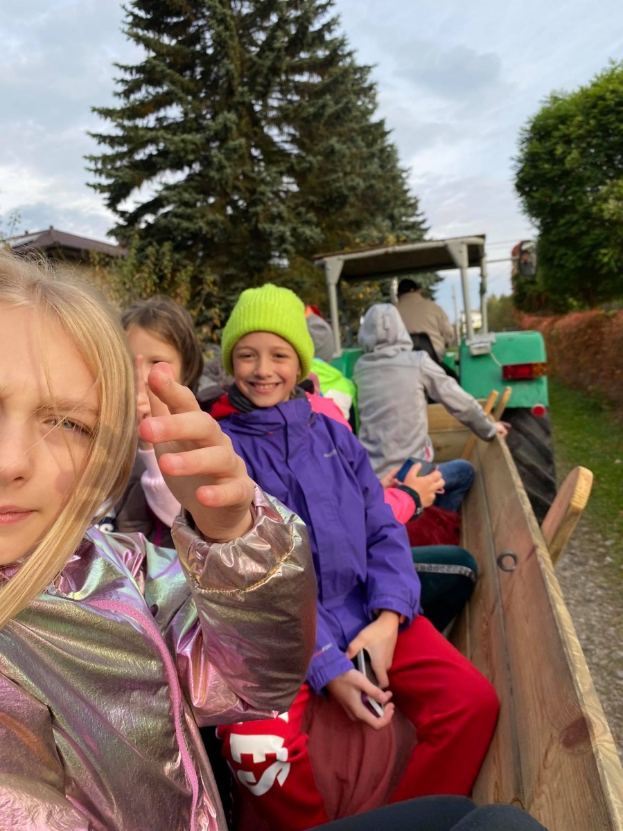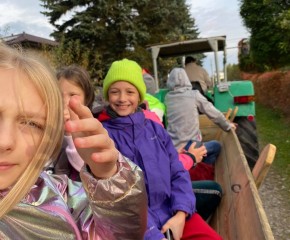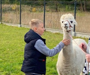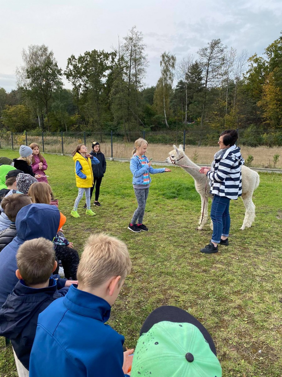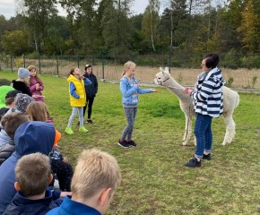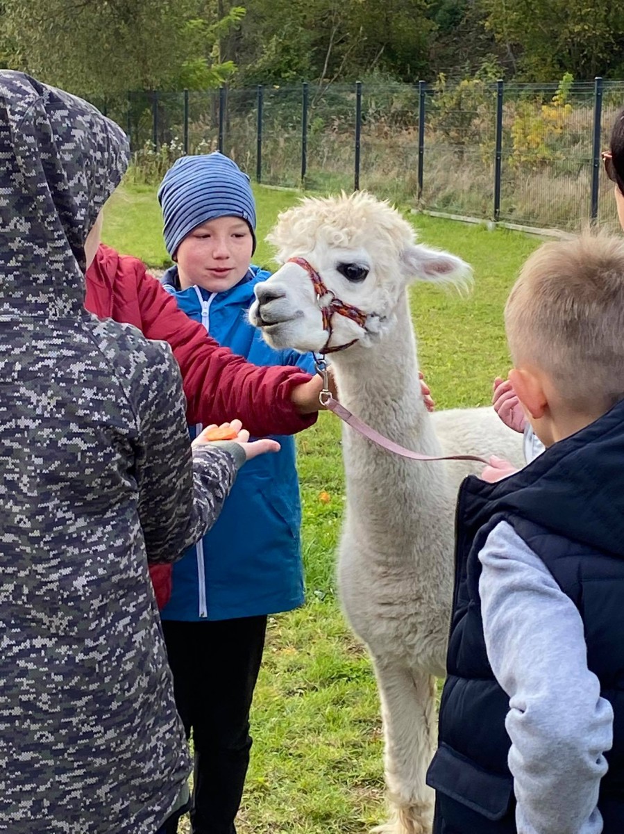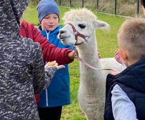 Klasy 4a i 4c wybrały się na wycieczkę integracyjną z nowymi wychowawcami. W Akacjowym Zakątku dzieci głaskały alpaki, zwiedzały mini zoo, kisiły kapustę, prały na tarze i wykonywały prace plastyczne z wełny alpaki. Był też czas na ciepłą kiełbasę i wspólną zabawę na placu. A największa atrakcją okazała się przejażdżka ciągnikiem.