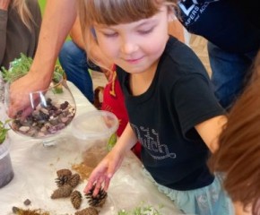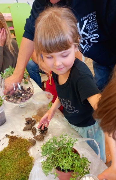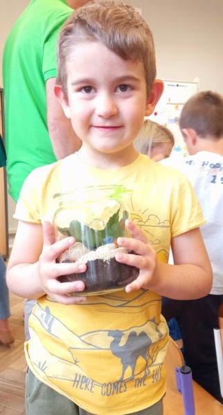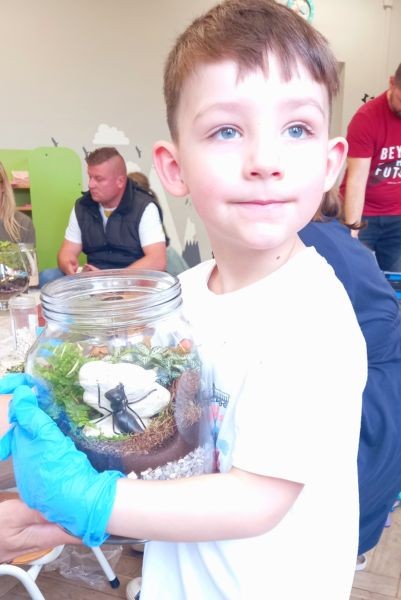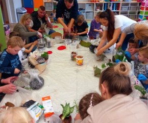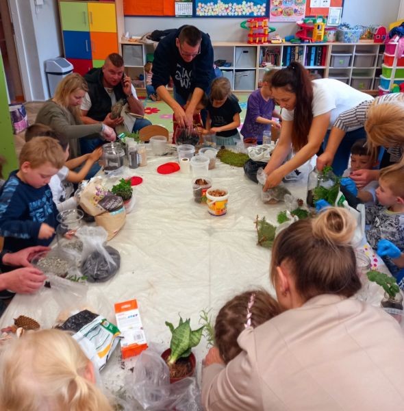 We wtorek 16 maja w naszym przedszkolu odbyły się warsztaty wiosenne z udziałem rodziców. Dzieci wspólnie z rodzicami zrobiły ,,Las w słoiku''. Jak widać na zdjęciach przedszkolakom bardzo się te zajęcia podobały. Wszystkie dzieci zabrały do domów swoje pięknie wykonane słoiki.