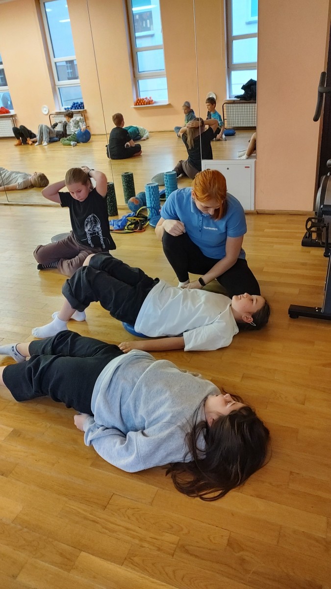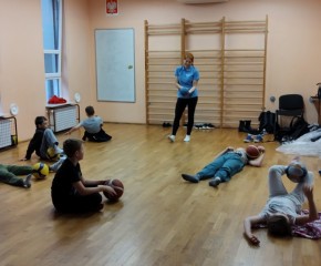 Zajęcia miały charakter praktyczny – uczniowie wykonywali zestaw ćwiczeń, dowiedzieli się, jak dbać o swoje ciało na co dzień. Podczas spotkania dzieci poznały podstawy profilaktyki zdrowego kręgosłupa i prawidłowej postawy.