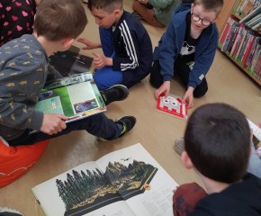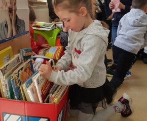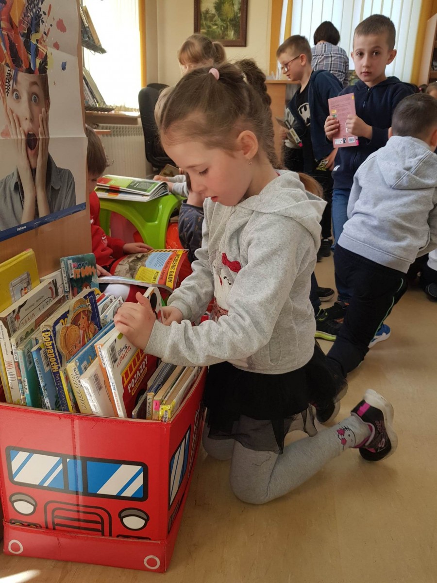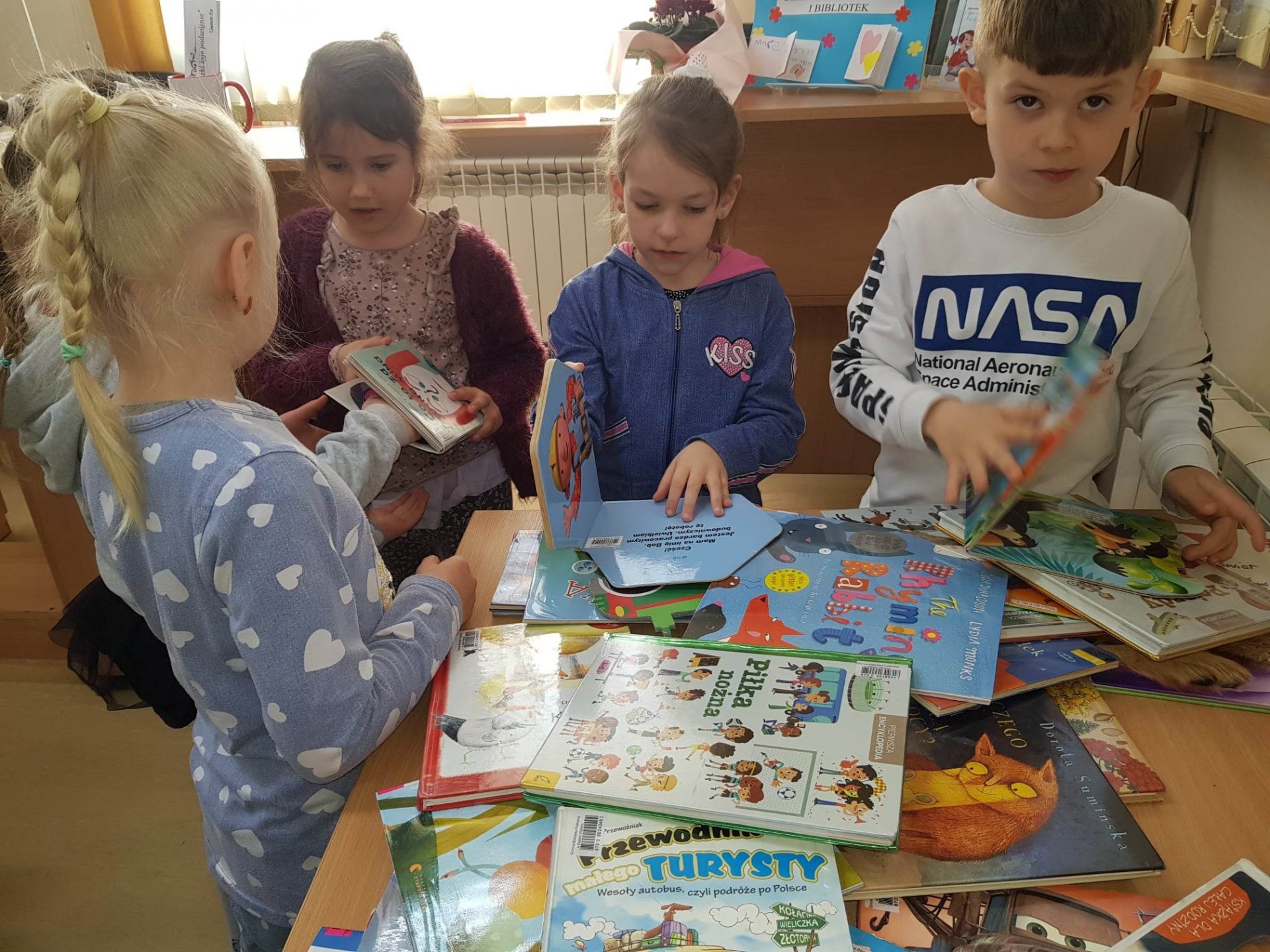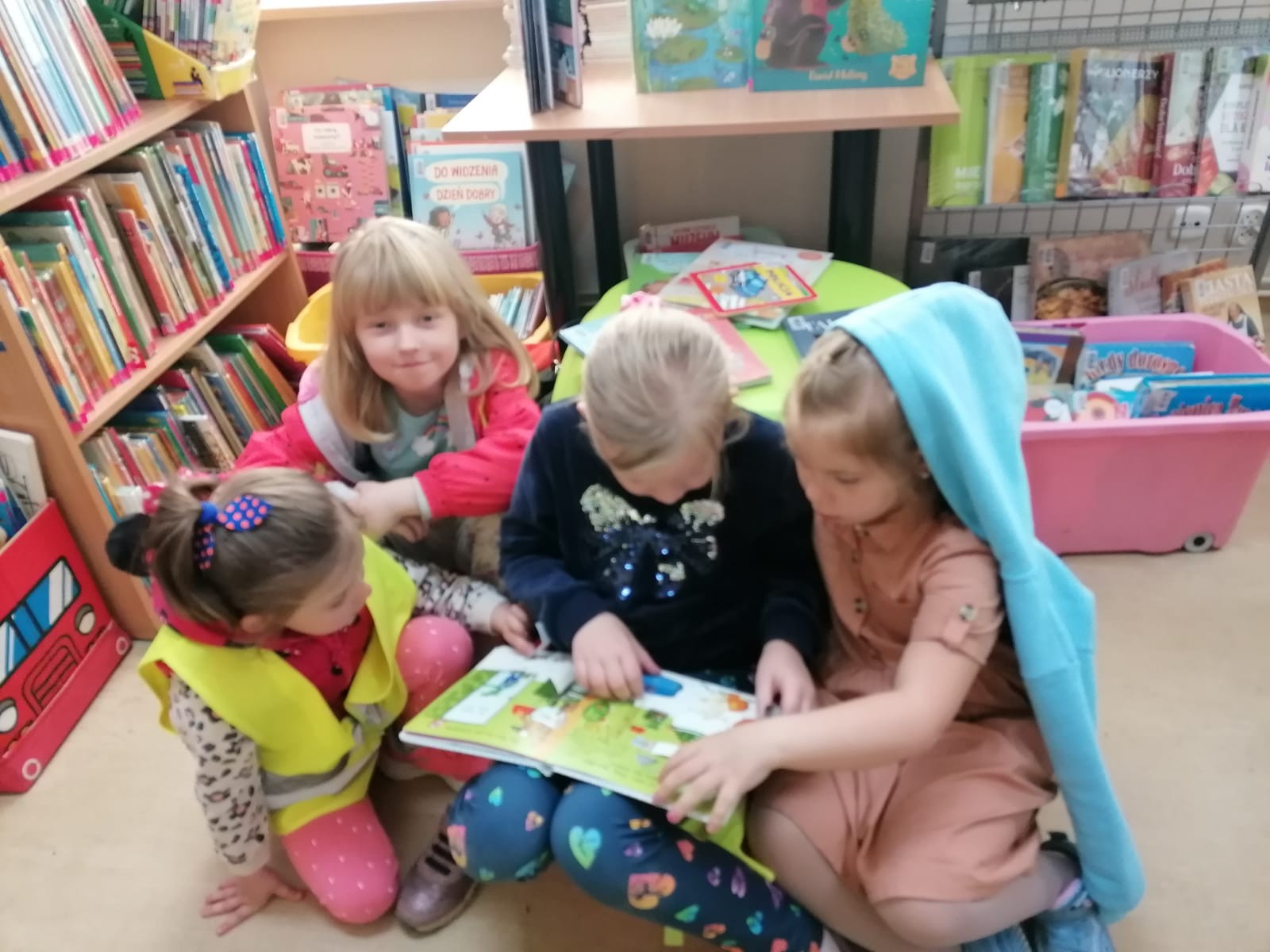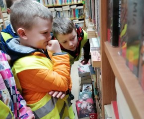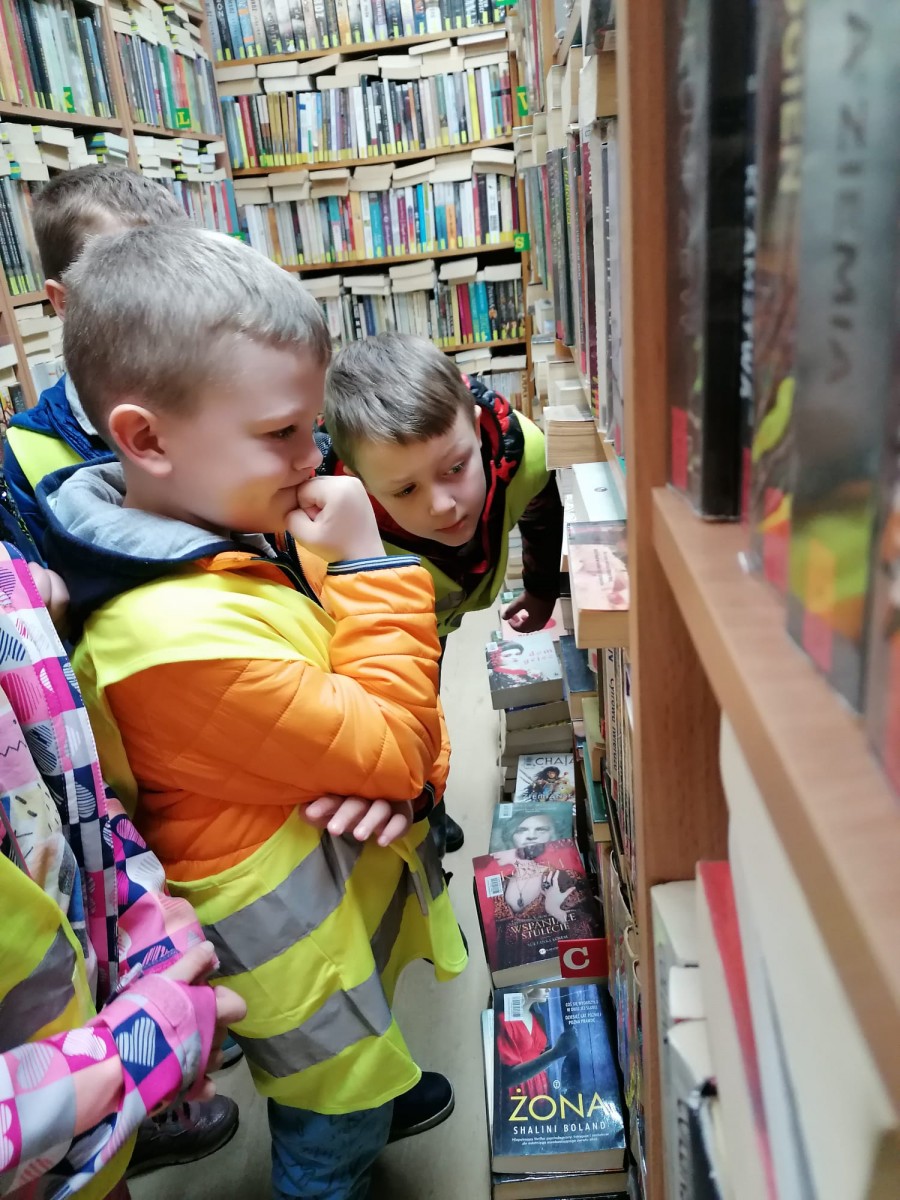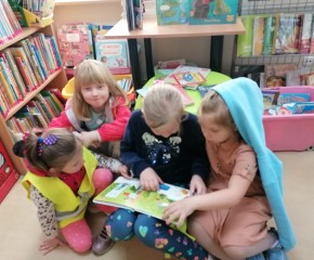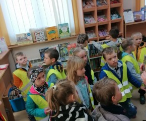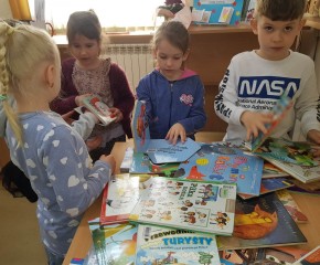 Podczas wizyty w bibliotece dzieci miały możliwość przejść między regałami w wypożyczalni i zapoznać się z biblioteką. Przedszkolaki z wielkim zainteresowaniem przeglądały książki znajdujące się na półkach, ale szczególne zainteresował ich dział dla dzieci. Wszystkim spodobały się kolorowe i bogato ilustrowane książeczki, które z chęcią oglądały i komentowały. Wielkie zainteresowanie wzbudziła też informacja o książkach w wersji e-booków, lub możliwość korzystania z zasobów bibliotecznych on-line.